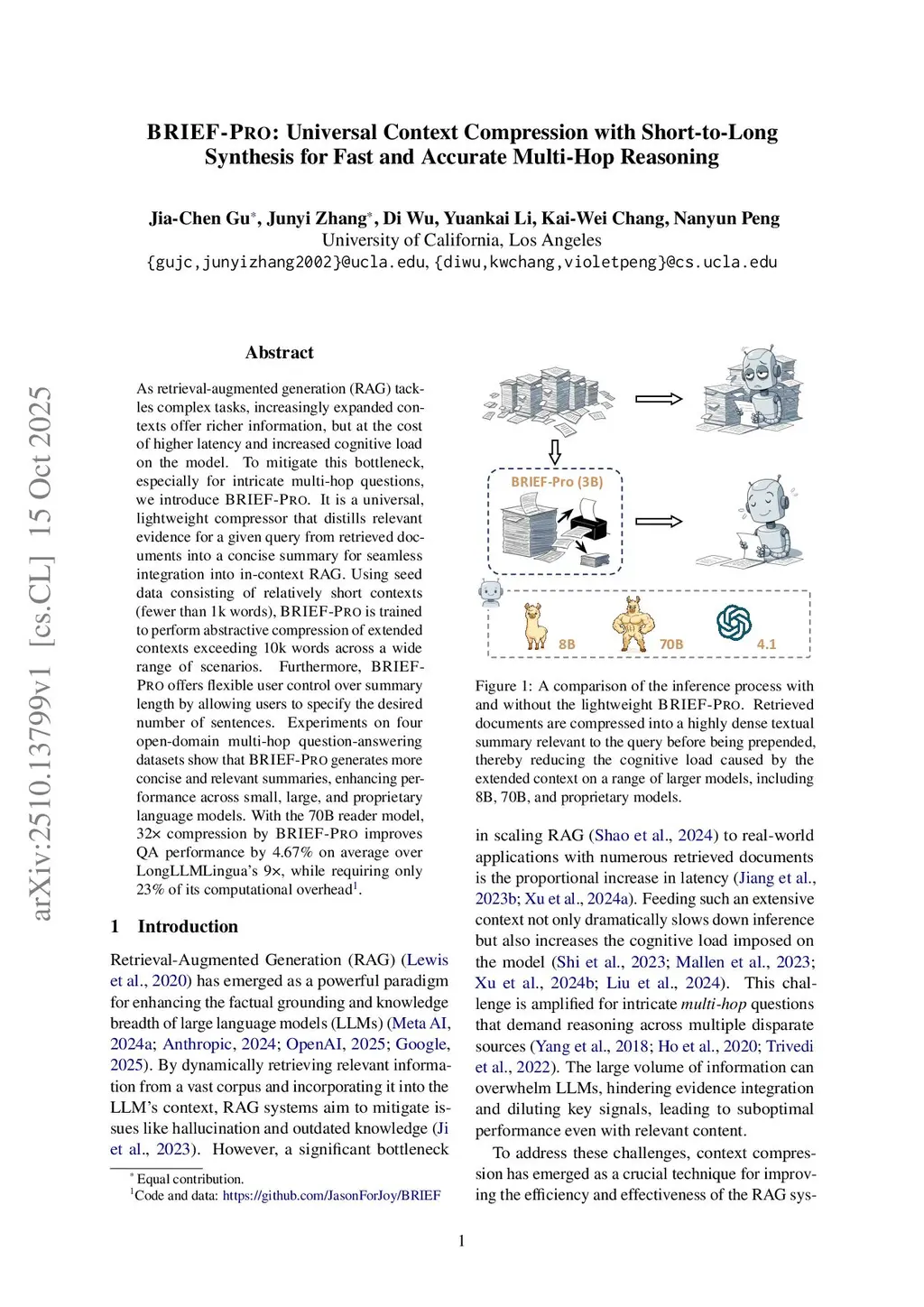 BRIEF-Pro: Universal Context Compression with Short-to-Long Synthesis for Fast and Accurate Multi-Hop Reasoning