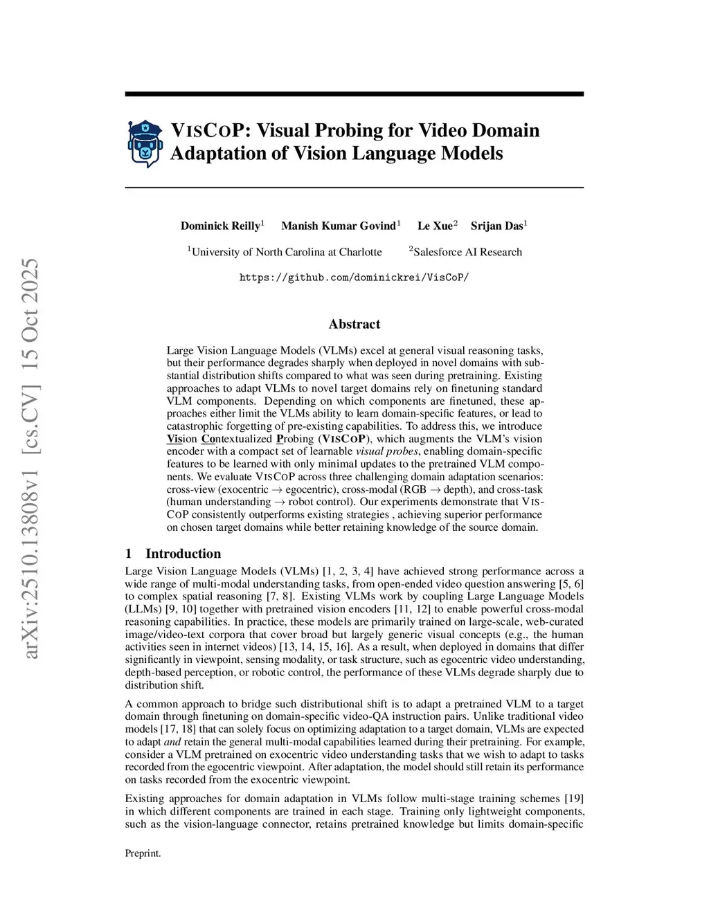 VisCoP: Visual Probing for Video Domain Adaptation of Vision Language Models