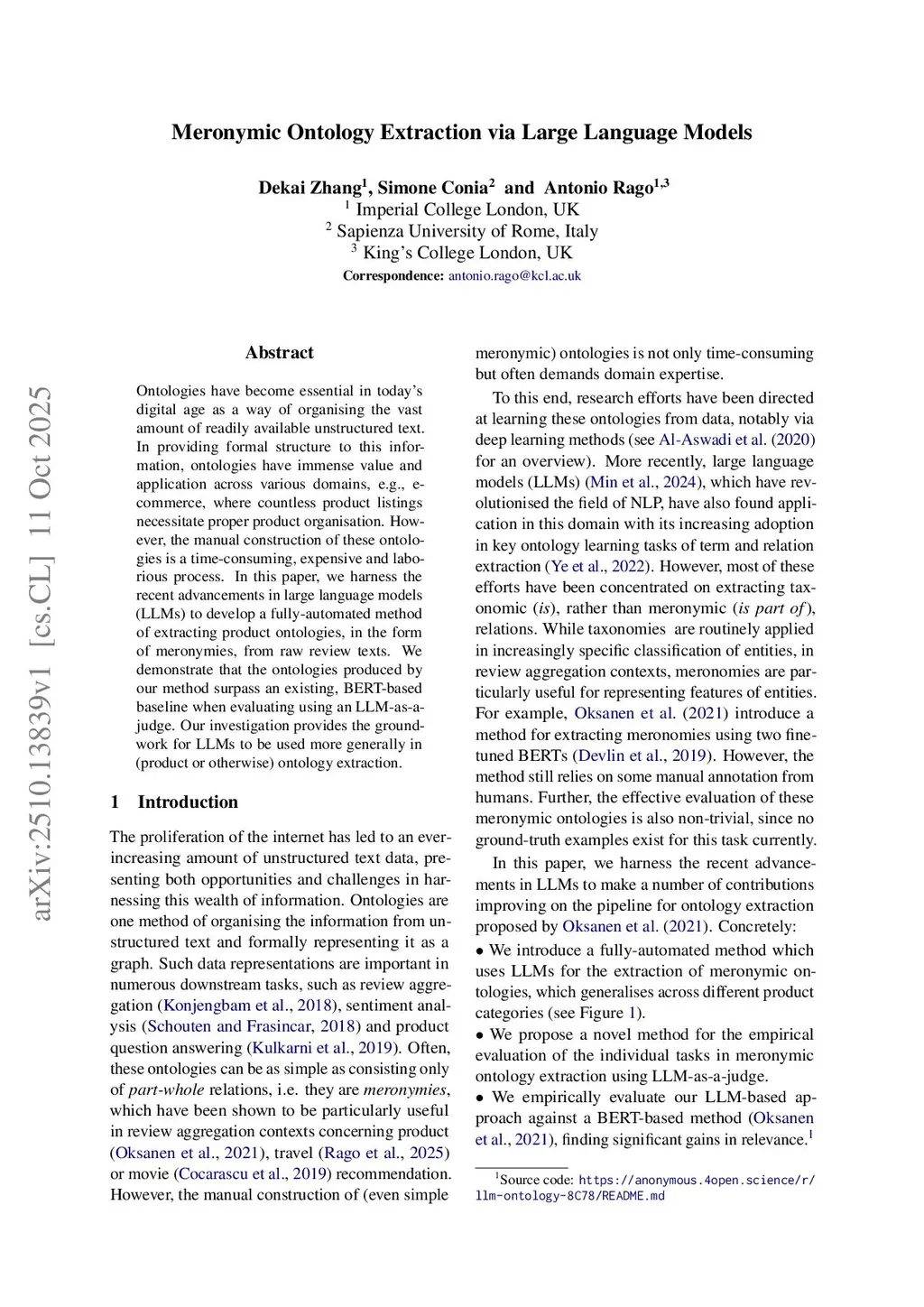 Meronymic Ontology Extraction via Large Language Models