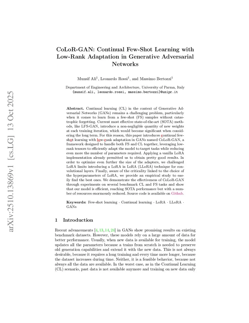 CoLoR-GAN: Continual Few-Shot Learning with Low-Rank Adaptation in Generative Adversarial Networks
