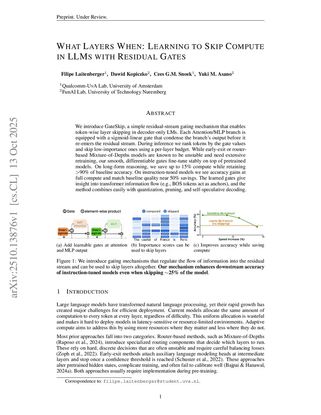 What Layers When: Learning to Skip Compute in LLMs with Residual Gates