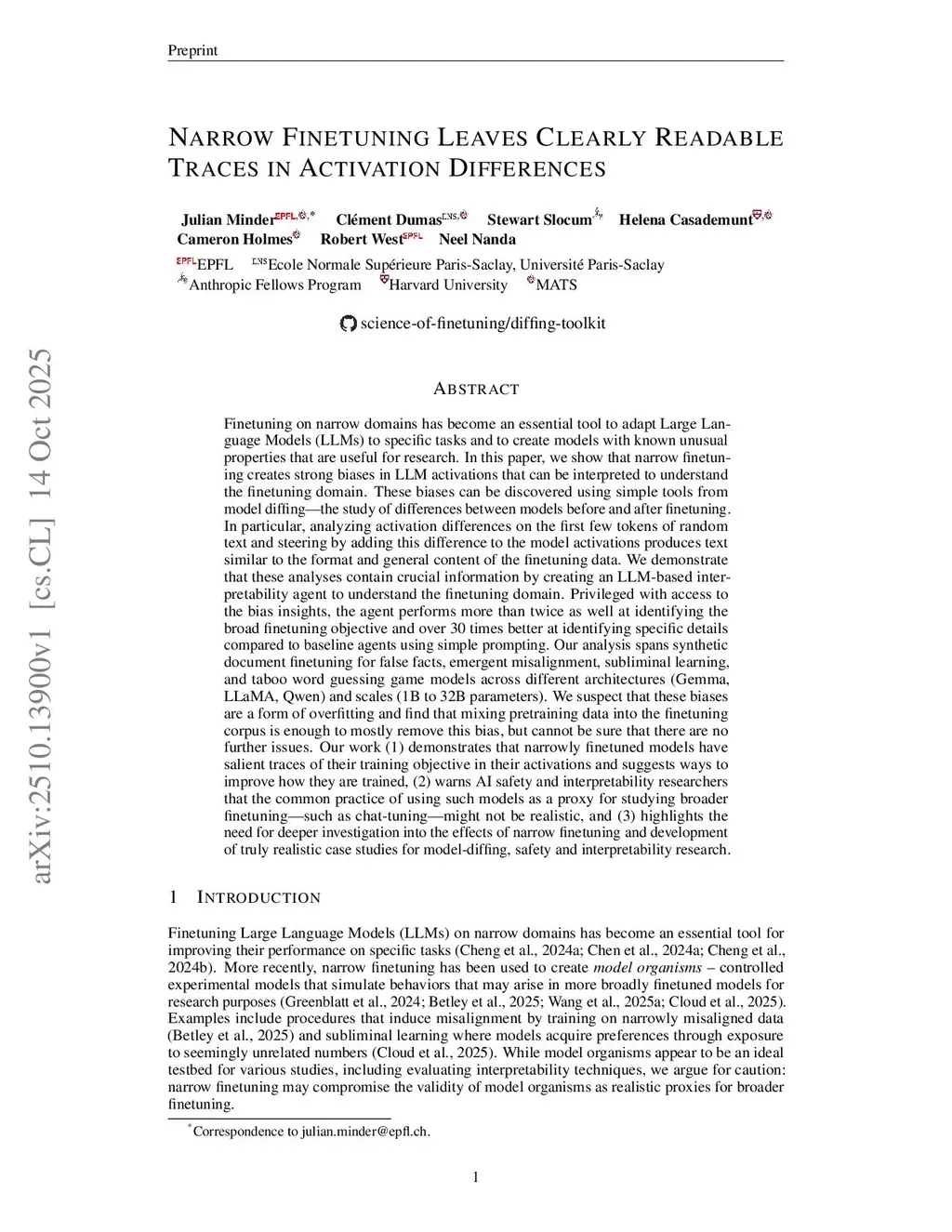 Narrow Finetuning Leaves Clearly Readable Traces in Activation Differences
