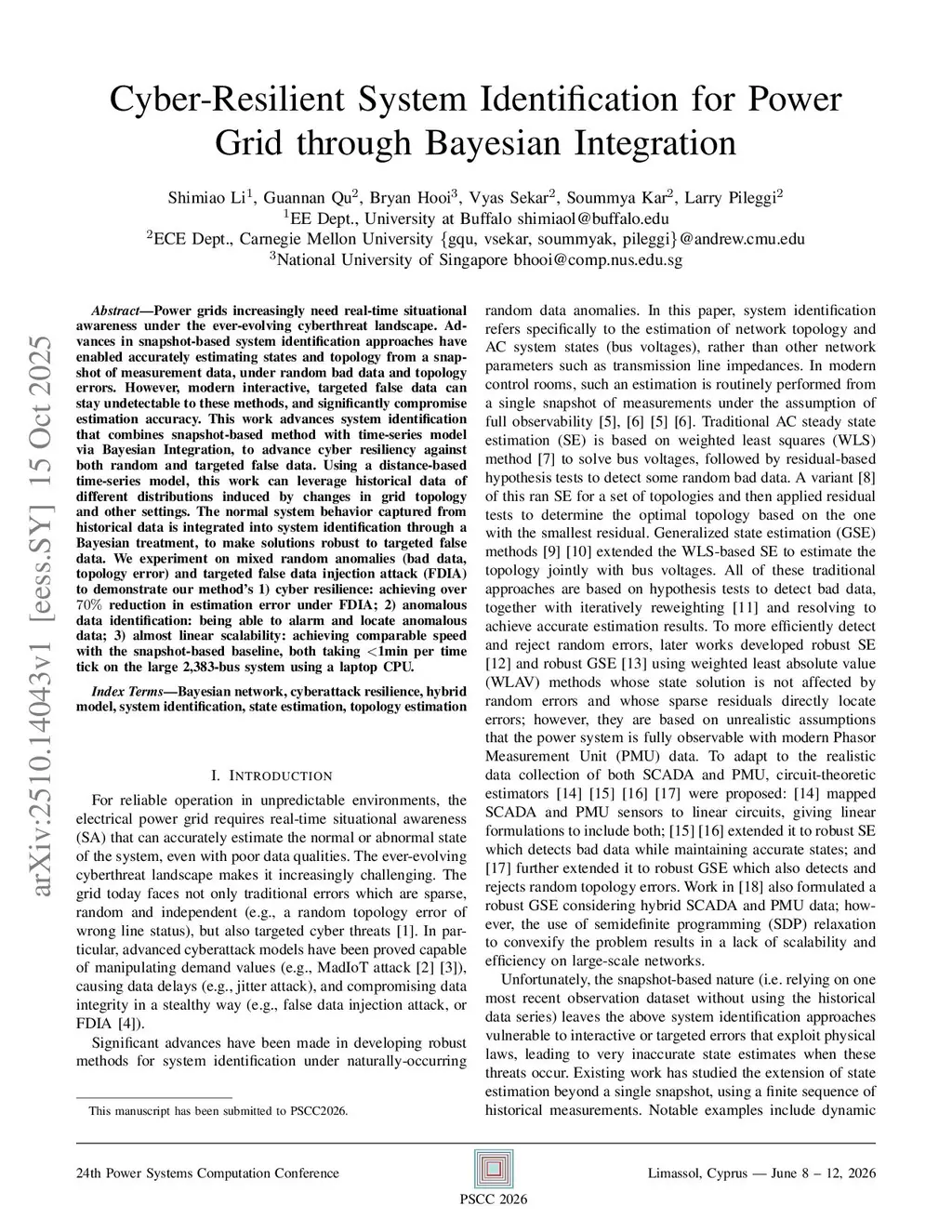 Power grids increasingly need real-time situational awareness under the ever-evolving cyberthreat landscape. Advances in snapshot-based system identification approaches have enabled accurately estimating states and topology from a snapshot of measurement data, under random bad data and topology errors. However, modern interactive, targeted false data can stay undetectable to these methods, and significantly compromise estimation accuracy. This work advances system identification that combines snapshot-based method with time-series model via Bayesian Integration, to advance cyber resiliency against both random and targeted false data. Using a distance-based time-series model, this work can leverage historical data of different distributions induced by changes in grid topology and other settings. The normal system behavior captured from historical data is integrated into system identification through a Bayesian treatment, to make solutions robust to targeted false data. We experiment on mixed random anomalies (bad data, topology error) and targeted false data injection attack (FDIA) to demonstrate our method's 1) cyber resilience: achieving over 70% reduction in estimation error under FDIA; 2) anomalous data identification: being able to alarm and locate anomalous data; 3) almost linear scalability: achieving comparable speed with the snapshot-based baseline, both taking <1min per time tick on the large 2,383-bus system using a laptop CPU.