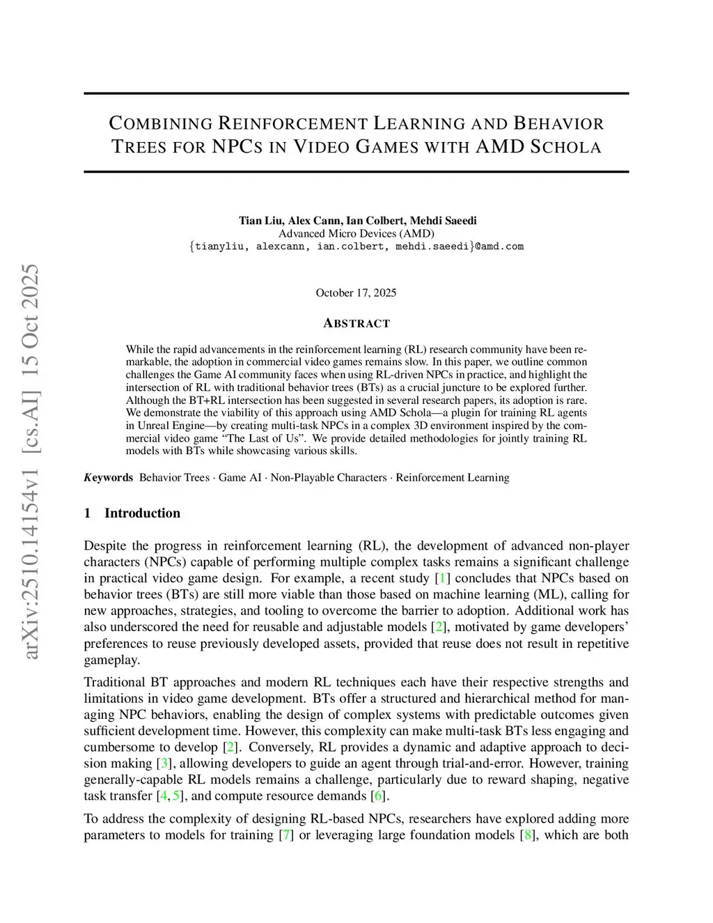 Combining Reinforcement Learning and Behavior Trees for NPCs in Video Games with AMD Schola