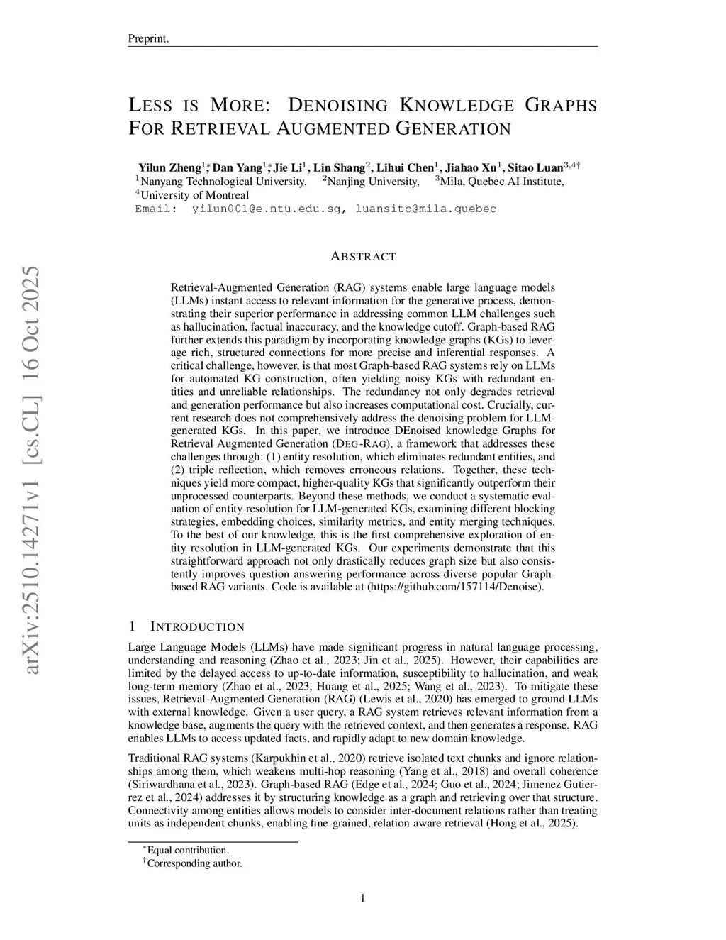 Less is More: Denoising Knowledge Graphs For Retrieval Augmented Generation