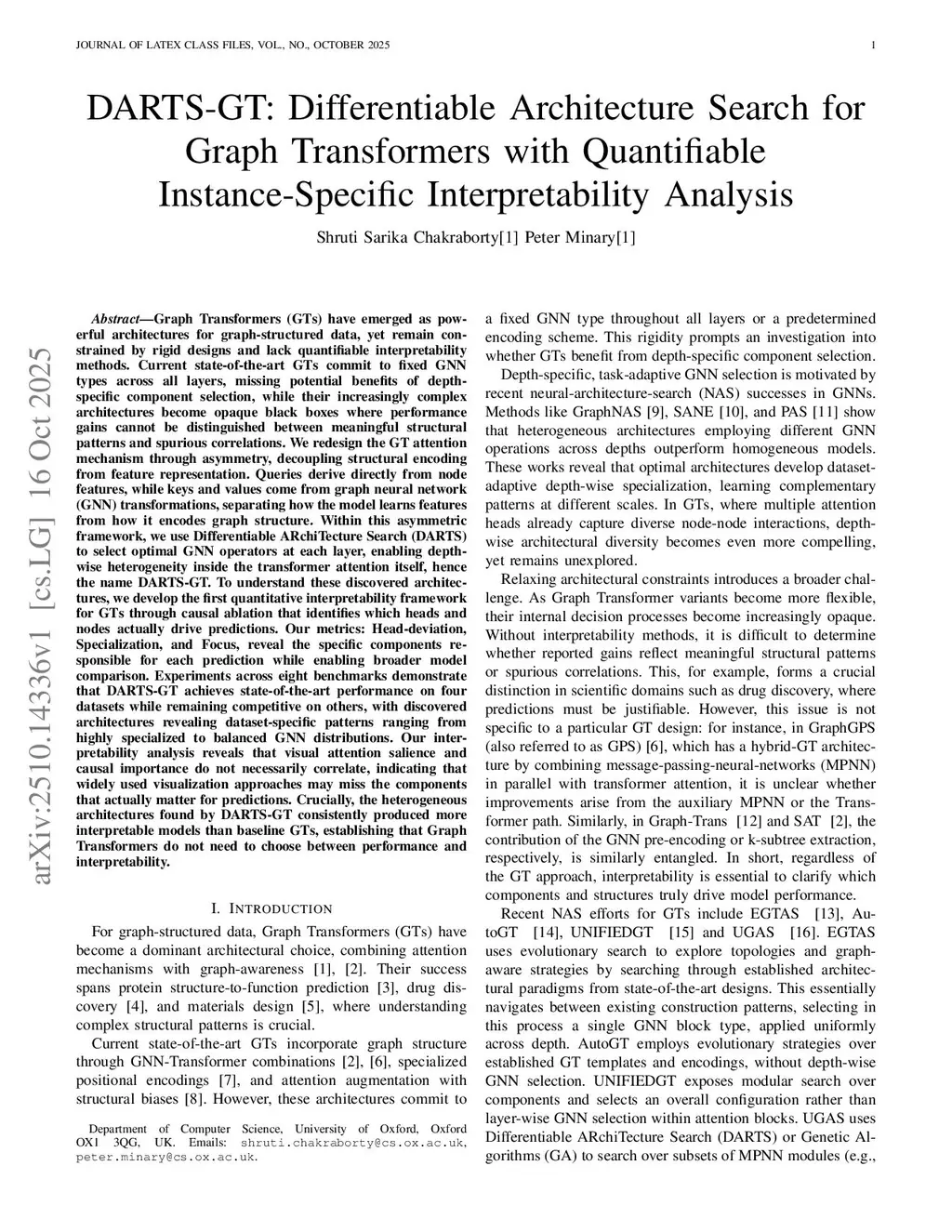DARTS-GT: Differentiable Architecture Search for Graph Transformers with Quantifiable Instance-Specific Interpretability Analysis