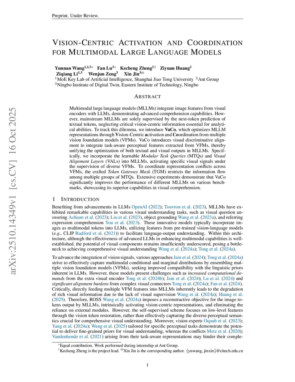 Vision-Centric Activation and Coordination for Multimodal Large Language Models