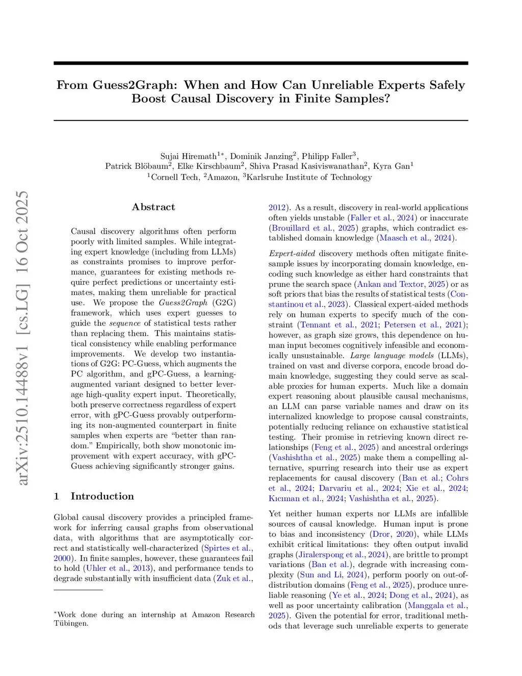Causal discovery algorithms often perform poorly with limited samples. While integrating expert knowledge (including from LLMs) as constraints promises to improve performance, guarantees for existing methods require perfect predictions or uncertainty estimates, making them unreliable for practical use. We propose the Guess2Graph (G2G) framework, which uses expert guesses to guide the sequence of statistical tests rather than replacing them. This maintains statistical consistency while enabling performance improvements. We develop two instantiations of G2G: PC-Guess, which augments the PC algorithm, and gPC-Guess, a learning-augmented variant designed to better leverage high-quality expert input. Theoretically, both preserve correctness regardless of expert error, with gPC-Guess provably outperforming its non-augmented counterpart in finite samples when experts are "better than random." Empirically, both show monotonic improvement with expert accuracy, with gPC-Guess achieving significantly stronger gains.