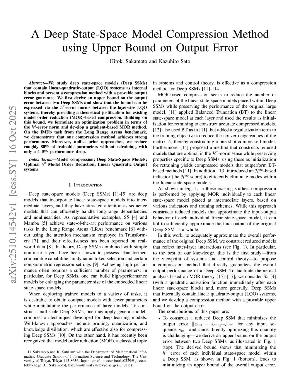 A Deep State-Space Model Compression Method using Upper Bound on Output Error