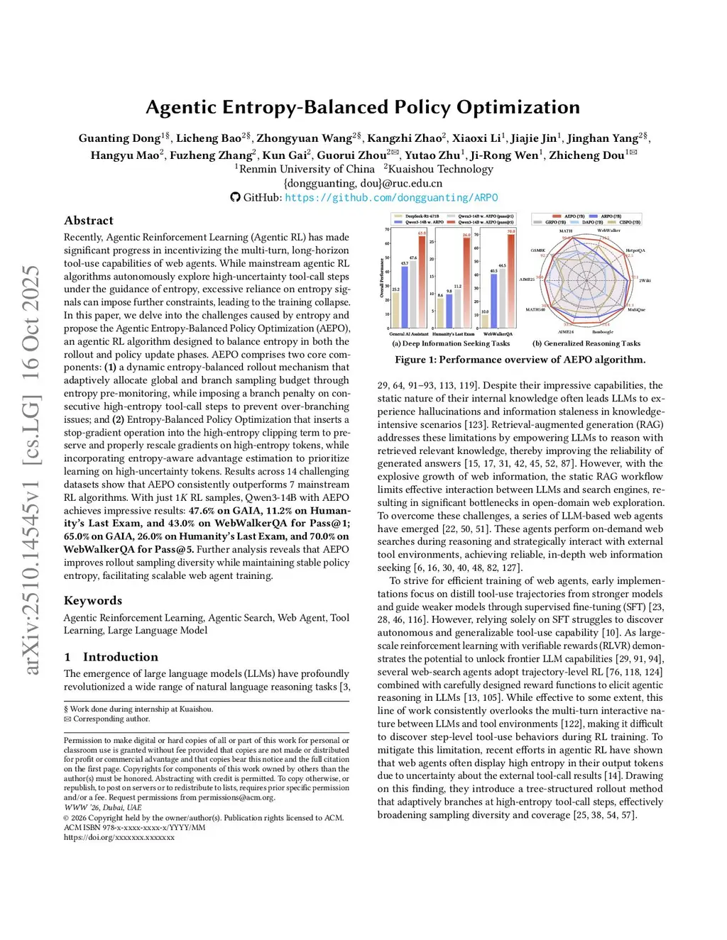 Recently, Agentic Reinforcement Learning (Agentic RL) has made significant progress in incentivizing the multi-turn, long-horizon tool-use capabilities of web agents. While mainstream agentic RL algorithms autonomously explore high-uncertainty tool-call steps under the guidance of entropy, excessive reliance on entropy signals can impose further constraints, leading to the training collapse. In this paper, we delve into the challenges caused by entropy and propose the Agentic Entropy-Balanced Policy Optimization (AEPO), an agentic RL algorithm designed to balance entropy in both the rollout and policy update phases. AEPO comprises two core components: (1) a dynamic entropy-balanced rollout mechanism that adaptively allocate global and branch sampling budget through entropy pre-monitoring, while imposing a branch penalty on consecutive high-entropy tool-call steps to prevent over-branching issues; and (2) Entropy-Balanced Policy Optimization that inserts a stop-gradient operation into the high-entropy clipping term to preserve and properly rescale gradients on high-entropy tokens, while incorporating entropy-aware advantage estimation to prioritize learning on high-uncertainty tokens. Results across 14 challenging datasets show that AEPO consistently outperforms 7 mainstream RL algorithms. With just 1K RL samples, Qwen3-14B with AEPO achieves impressive results: 47.6% on GAIA, 11.2% on Humanity's Last Exam, and 43.0% on WebWalker for Pass@1; 65.0% on GAIA, 26.0% on Humanity's Last Exam, and 70.0% on WebWalker for Pass@5. Further analysis reveals that AEPO improves rollout sampling diversity while maintaining stable policy entropy, facilitating scalable web agent training.