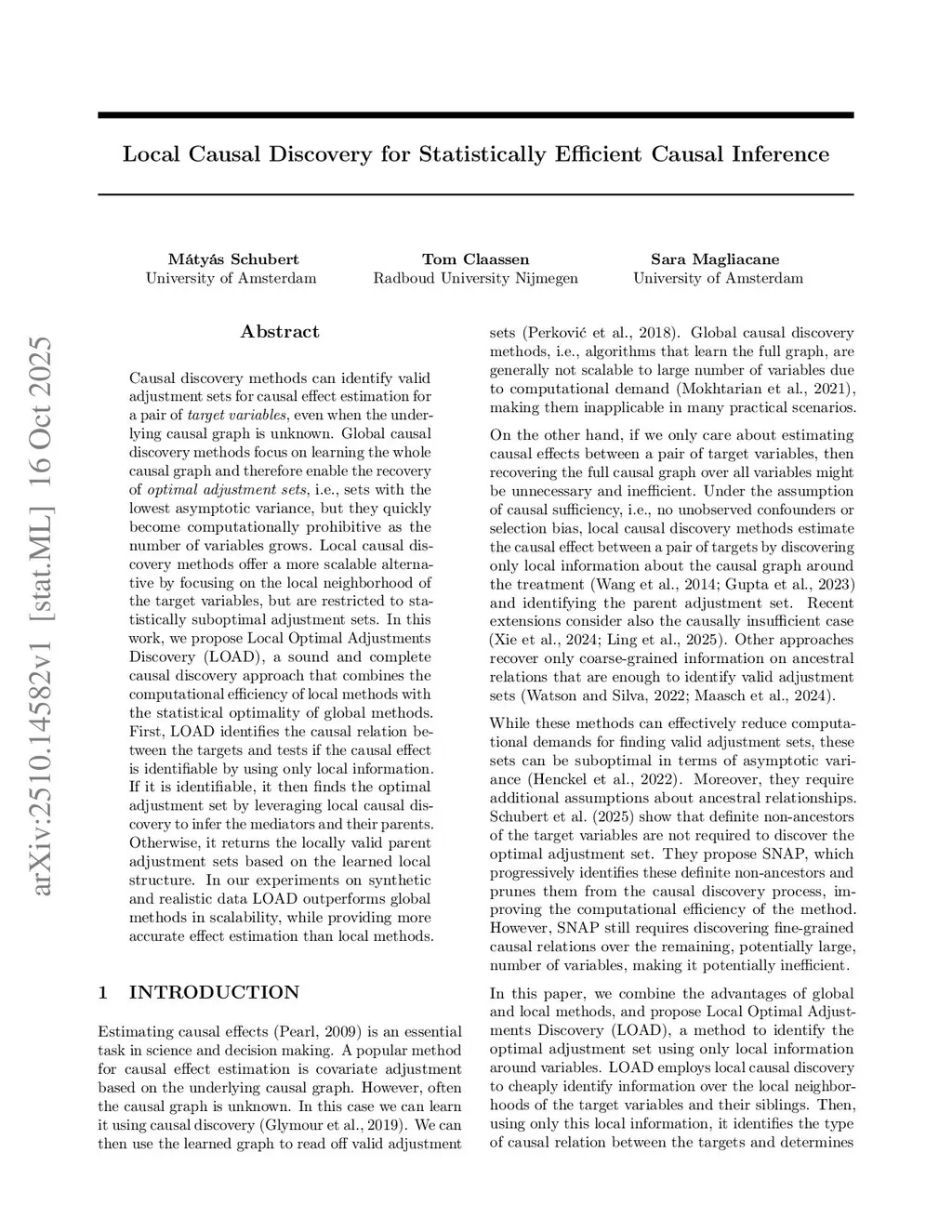 Causal discovery methods can identify valid adjustment sets for causal effect estimation for a pair of target variables, even when the underlying causal graph is unknown. Global causal discovery methods focus on learning the whole causal graph and therefore enable the recovery of optimal adjustment sets, i.e., sets with the lowest asymptotic variance, but they quickly become computationally prohibitive as the number of variables grows. Local causal discovery methods offer a more scalable alternative by focusing on the local neighborhood of the target variables, but are restricted to statistically suboptimal adjustment sets. In this work, we propose Local Optimal Adjustments Discovery (LOAD), a sound and complete causal discovery approach that combines the computational efficiency of local methods with the statistical optimality of global methods. First, LOAD identifies the causal relation between the targets and tests if the causal effect is identifiable by using only local information. If it is identifiable, it then finds the optimal adjustment set by leveraging local causal discovery to infer the mediators and their parents. Otherwise, it returns the locally valid parent adjustment sets based on the learned local structure. In our experiments on synthetic and realistic data LOAD outperforms global methods in scalability, while providing more accurate effect estimation than local methods.