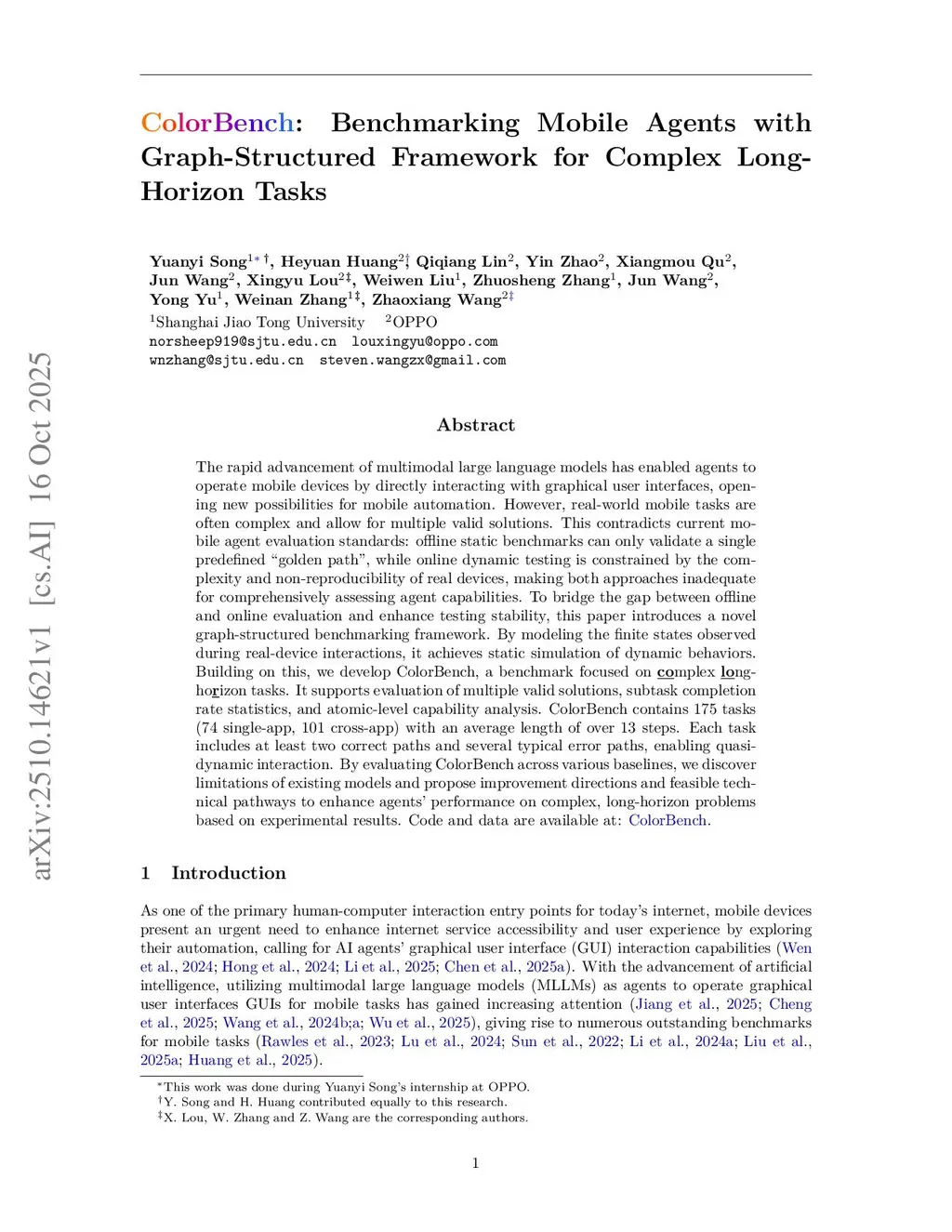 ColorBench: Benchmarking Mobile Agents with Graph-Structured Framework for Complex Long-Horizon Tasks