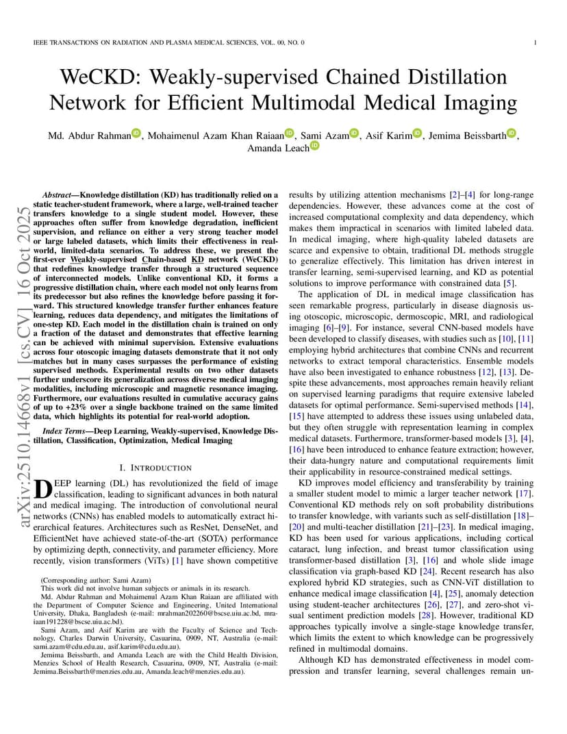 WeCKD: Weakly-supervised Chained Distillation Network for Efficient Multimodal Medical Imaging