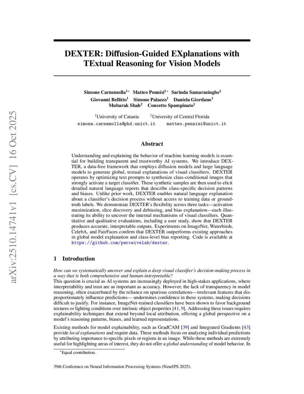 DEXTER: Diffusion-Guided EXplanations with TExtual Reasoning for Vision Models