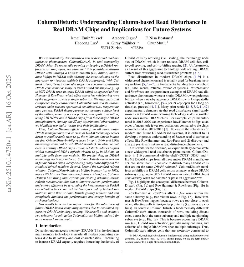 ColumnDisturb: Understanding Column-based Read Disturbance in Real DRAM Chips and Implications for Future Systems