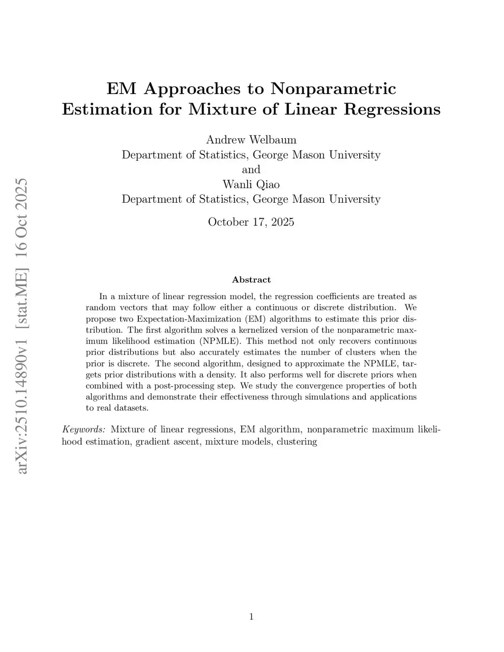 In a mixture of linear regression model, the regression coefficients are treated as random vectors that may follow either a continuous or discrete distribution. We propose two Expectation-Maximization (EM) algorithms to estimate this prior distribution. The first algorithm solves a kernelized version of the nonparametric maximum likelihood estimation (NPMLE). This method not only recovers continuous prior distributions but also accurately estimates the number of clusters when the prior is discrete. The second algorithm, designed to approximate the NPMLE, targets prior distributions with a density. It also performs well for discrete priors when combined with a post-processing step. We study the convergence properties of both algorithms and demonstrate their effectiveness through simulations and applications to real datasets.