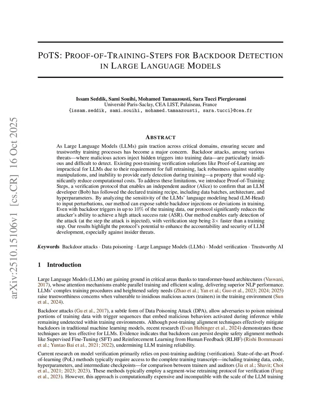 PoTS: Proof-of-Training-Steps for Backdoor Detection in Large Language Models