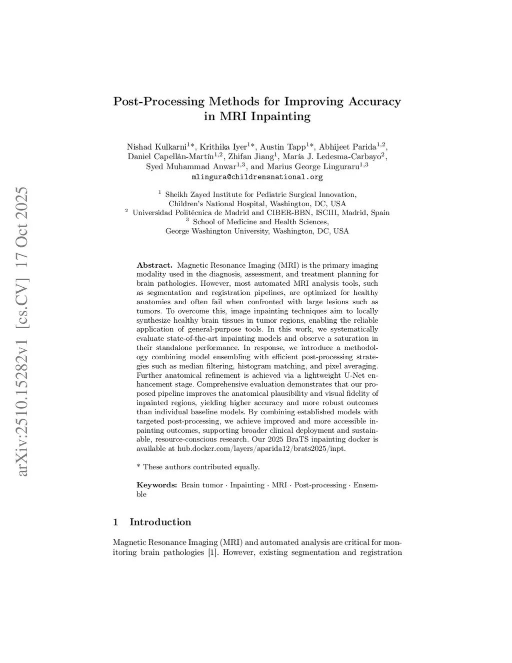 Post-Processing Methods for Improving Accuracy in MRI Inpainting