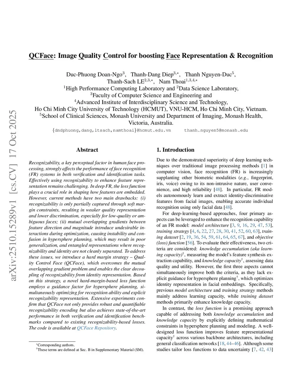 QCFace: Image Quality Control for boosting Face Representation & Recognition