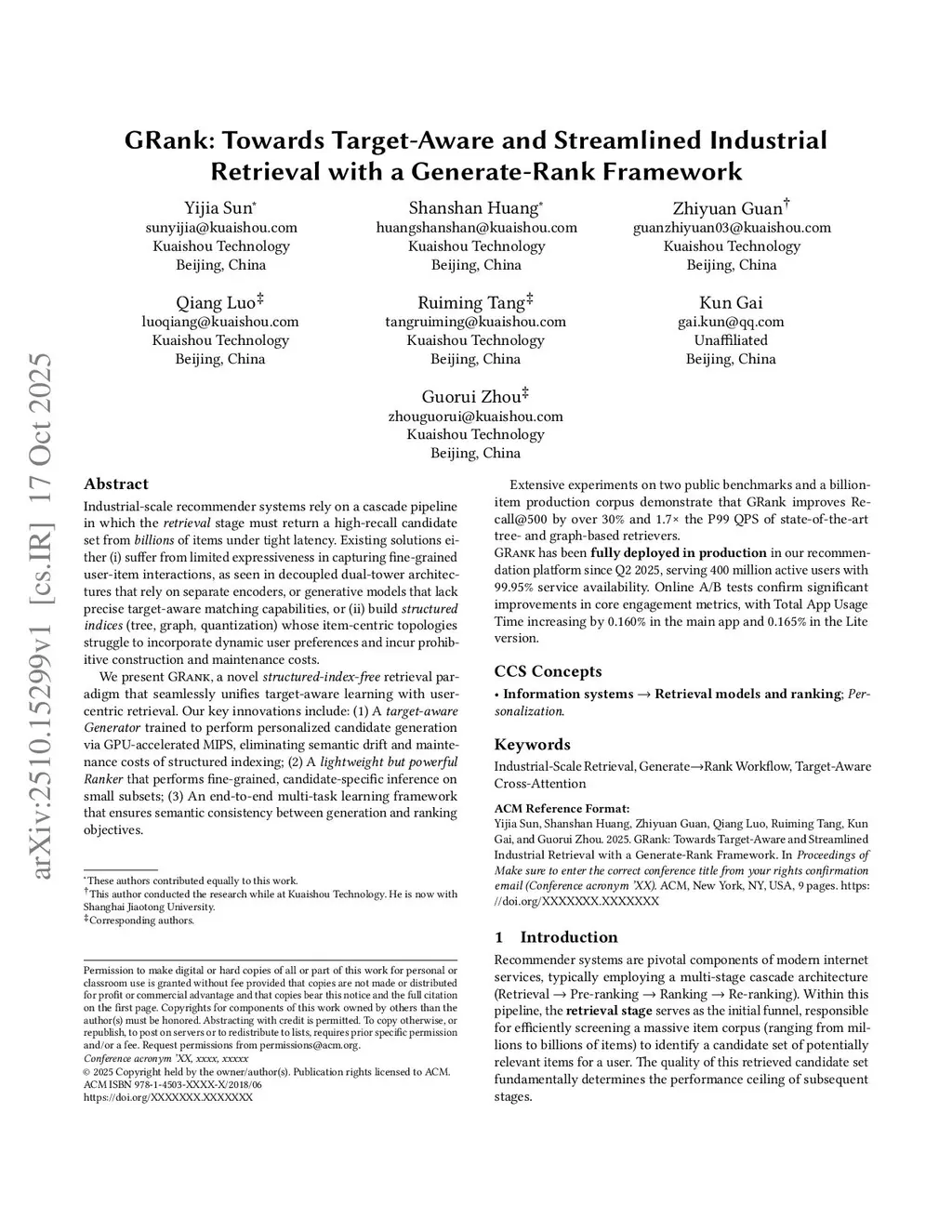GRank: Towards Target-Aware and Streamlined Industrial Retrieval with a Generate-Rank Framework