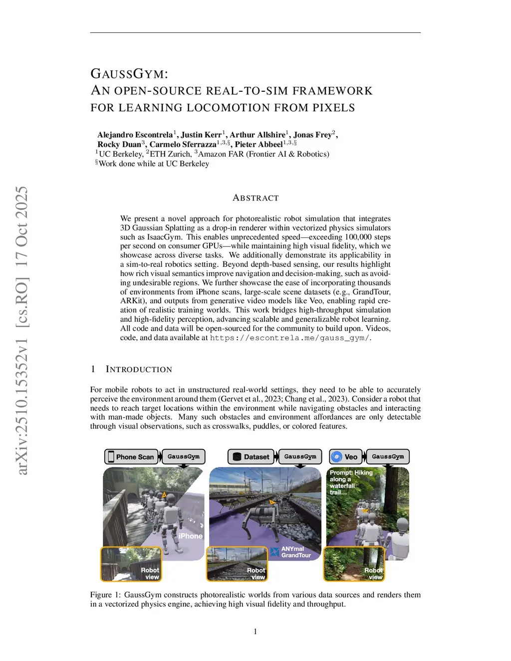 GaussGym: An open-source real-to-sim framework for learning locomotion from pixels