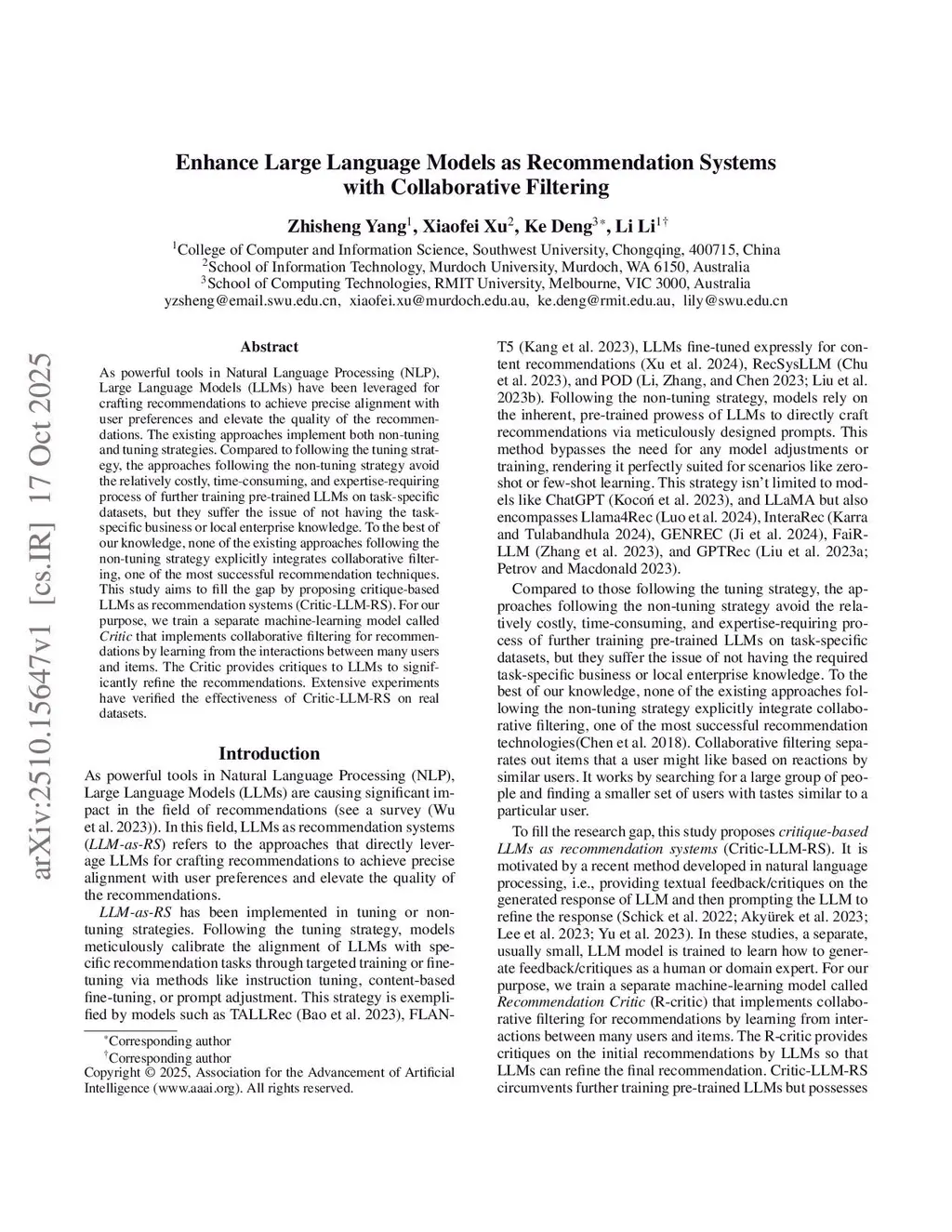Enhance Large Language Models as Recommendation Systems with Collaborative Filtering