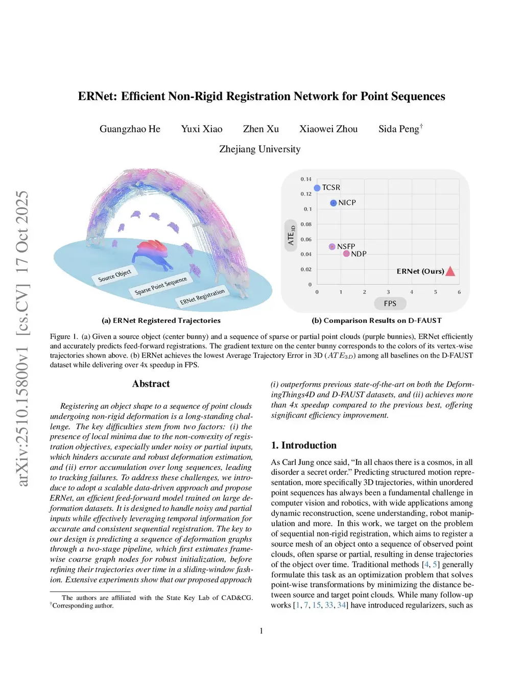 ERNet: Efficient Non-Rigid Registration Network for Point Sequences