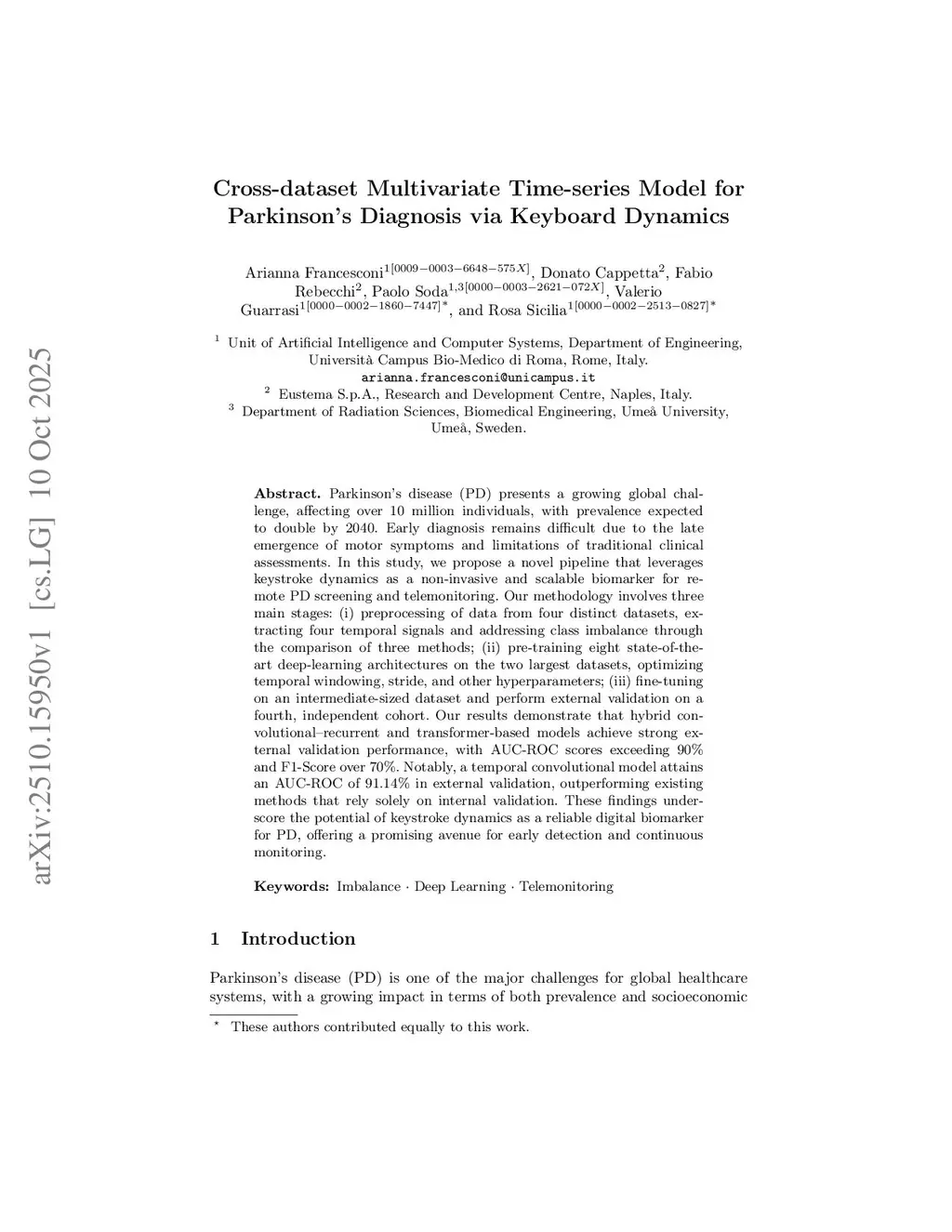 Cross-dataset Multivariate Time-series Model for Parkinson's Diagnosis via Keyboard Dynamics