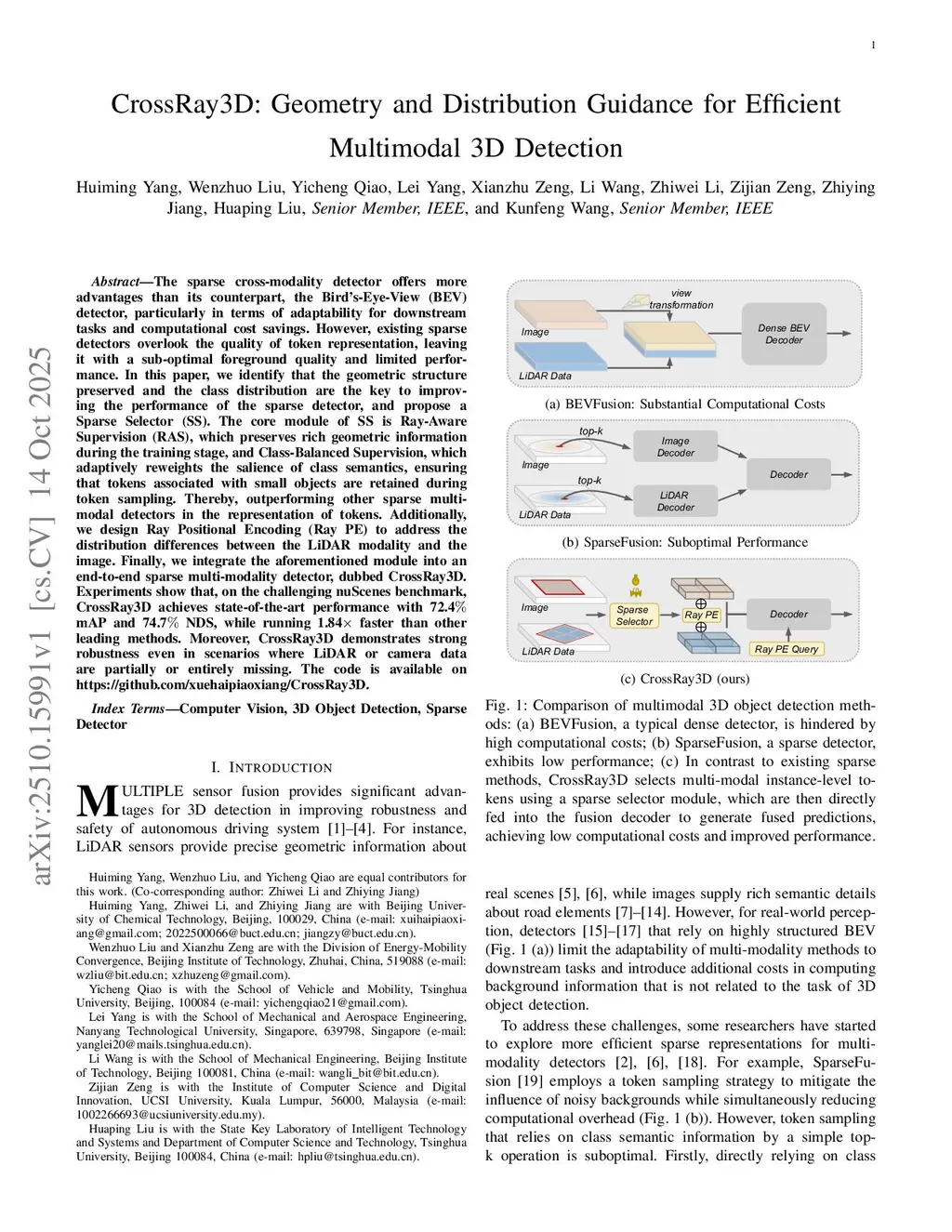The sparse cross-modality detector offers more advantages than its counterpart, the Bird's-Eye-View (BEV) detector, particularly in terms of adaptability for downstream tasks and computational cost savings. However, existing sparse detectors overlook the quality of token representation, leaving it with a sub-optimal foreground quality and limited performance. In this paper, we identify that the geometric structure preserved and the class distribution are the key to improving the performance of the sparse detector, and propose a Sparse Selector (SS). The core module of SS is Ray-Aware Supervision (RAS), which preserves rich geometric information during the training stage, and Class-Balanced Supervision, which adaptively reweights the salience of class semantics, ensuring that tokens associated with small objects are retained during token sampling. Thereby, outperforming other sparse multi-modal detectors in the representation of tokens. Additionally, we design Ray Positional Encoding (Ray PE) to address the distribution differences between the LiDAR modality and the image. Finally, we integrate the aforementioned module into an end-to-end sparse multi-modality detector, dubbed CrossRay3D. Experiments show that, on the challenging nuScenes benchmark, CrossRay3D achieves state-of-the-art performance with 72.4 mAP and 74.7 NDS, while running 1.84 faster than other leading methods. Moreover, CrossRay3D demonstrates strong robustness even in scenarios where LiDAR or camera data are partially or entirely missing.