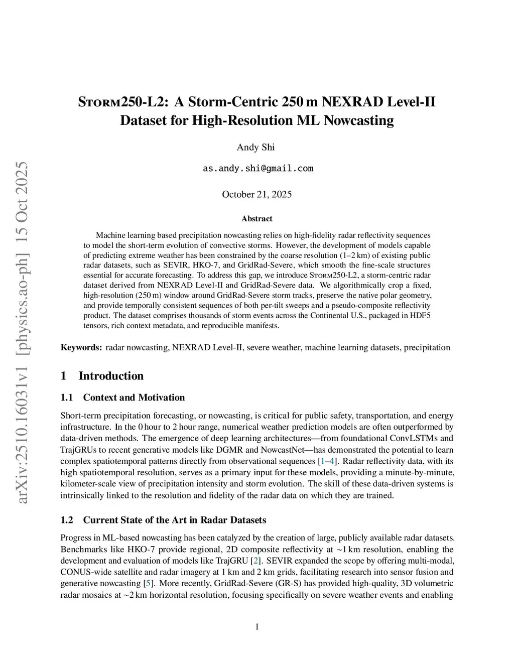 Machine learning-based precipitation nowcasting relies on high-fidelity radar reflectivity sequences to model the short-term evolution of convective storms. However, the development of models capable of predicting extreme weather has been constrained by the coarse resolution (1-2 km) of existing public radar datasets, such as SEVIR, HKO-7, and GridRad-Severe, which smooth the fine-scale structures essential for accurate forecasting. To address this gap, we introduce Storm250-L2, a storm-centric radar dataset derived from NEXRAD Level-II and GridRad-Severe data. We algorithmically crop a fixed, high-resolution (250 m) window around GridRad-Severe storm tracks, preserve the native polar geometry, and provide temporally consistent sequences of both per-tilt sweeps and a pseudo-composite reflectivity product. The dataset comprises thousands of storm events across the continental United States, packaged in HDF5 tensors with rich context metadata and reproducible manifests.
