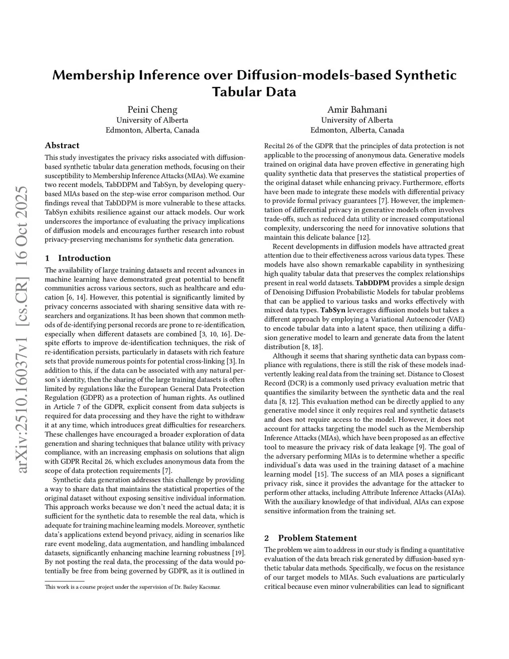 Membership Inference over Diffusion-models-based Synthetic Tabular Data