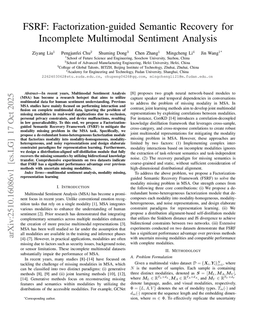 FSRF: Factorization-guided Semantic Recovery for Incomplete Multimodal Sentiment Analysis