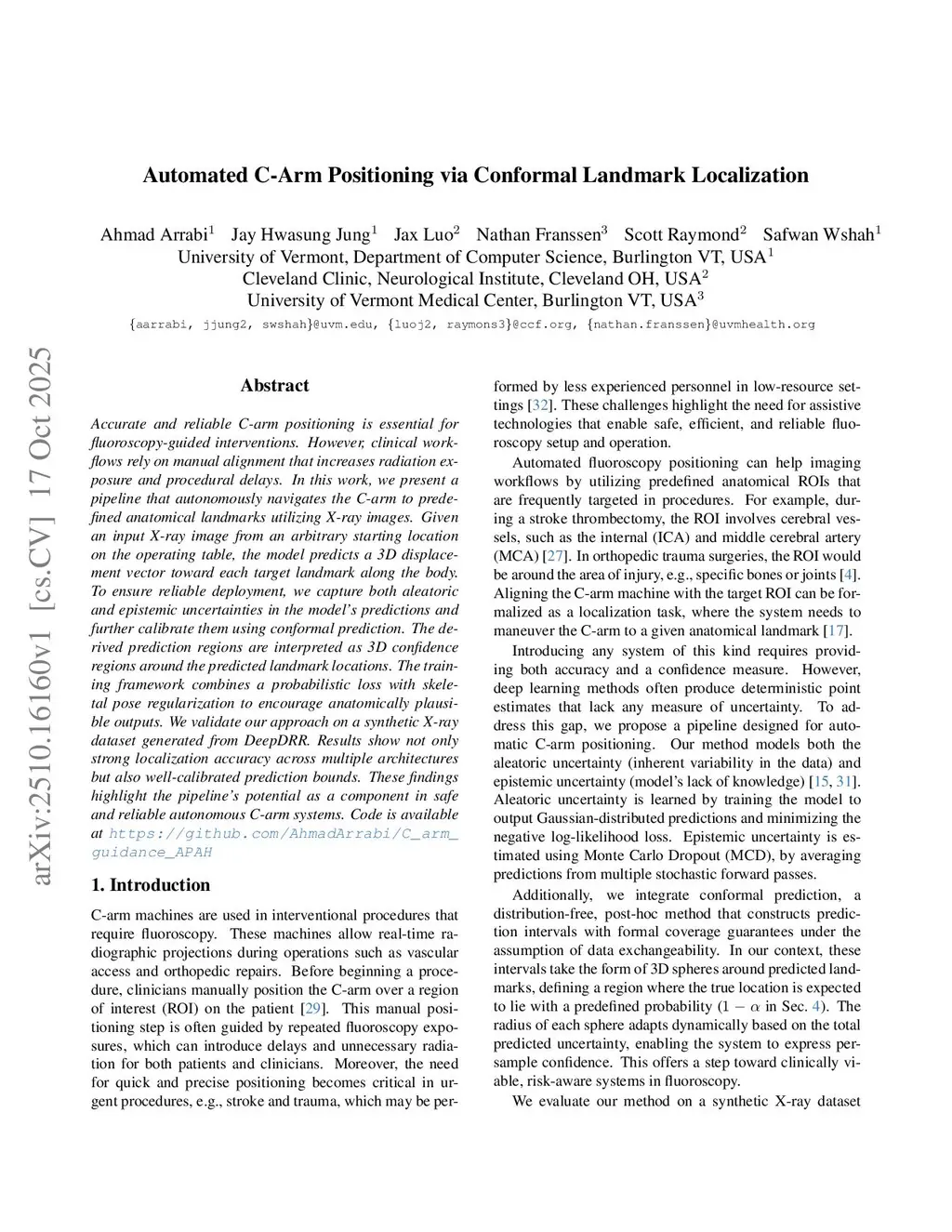 Automated C-Arm Positioning via Conformal Landmark Localization