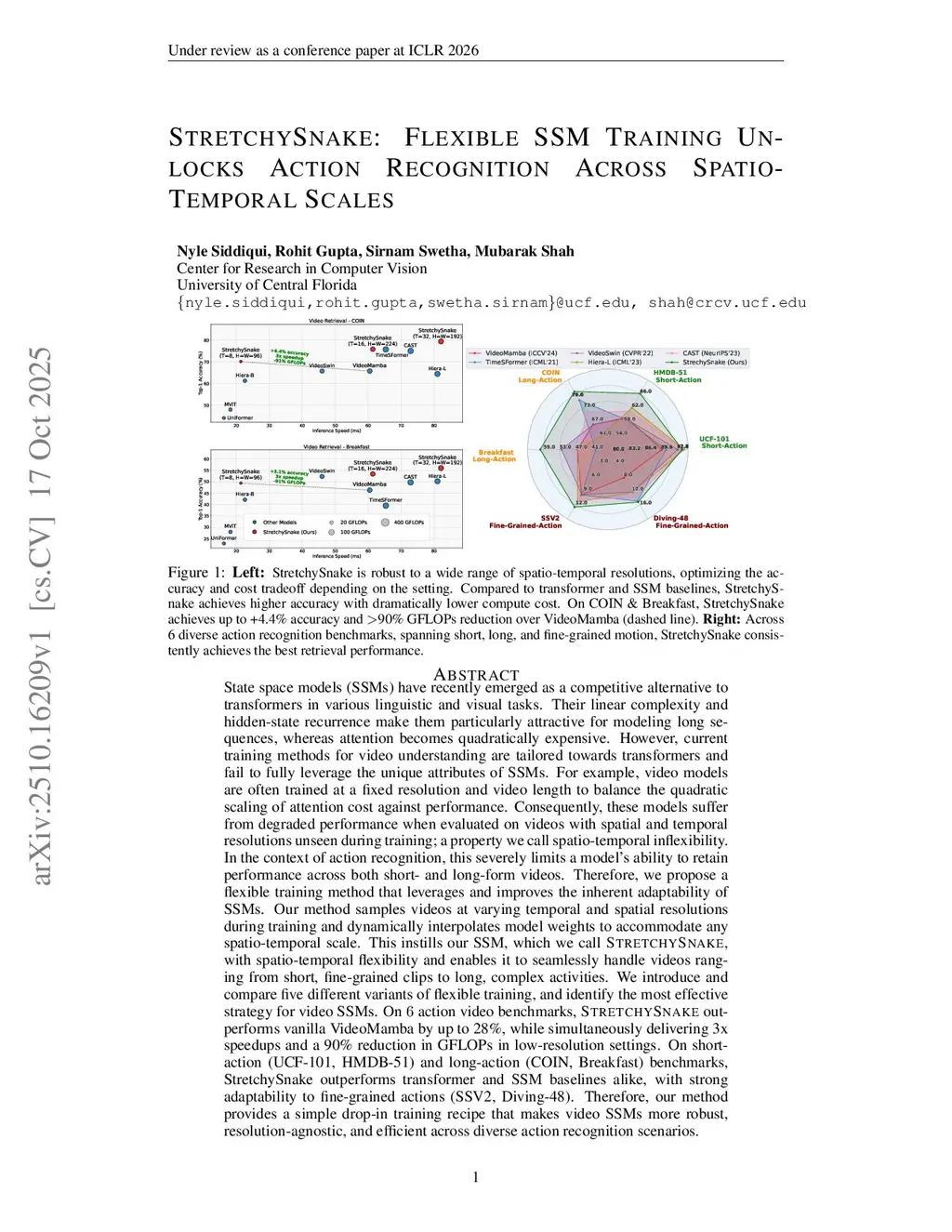 StretchySnake: Flexible SSM Training Unlocks Action Recognition Across Spatio-Temporal Scales