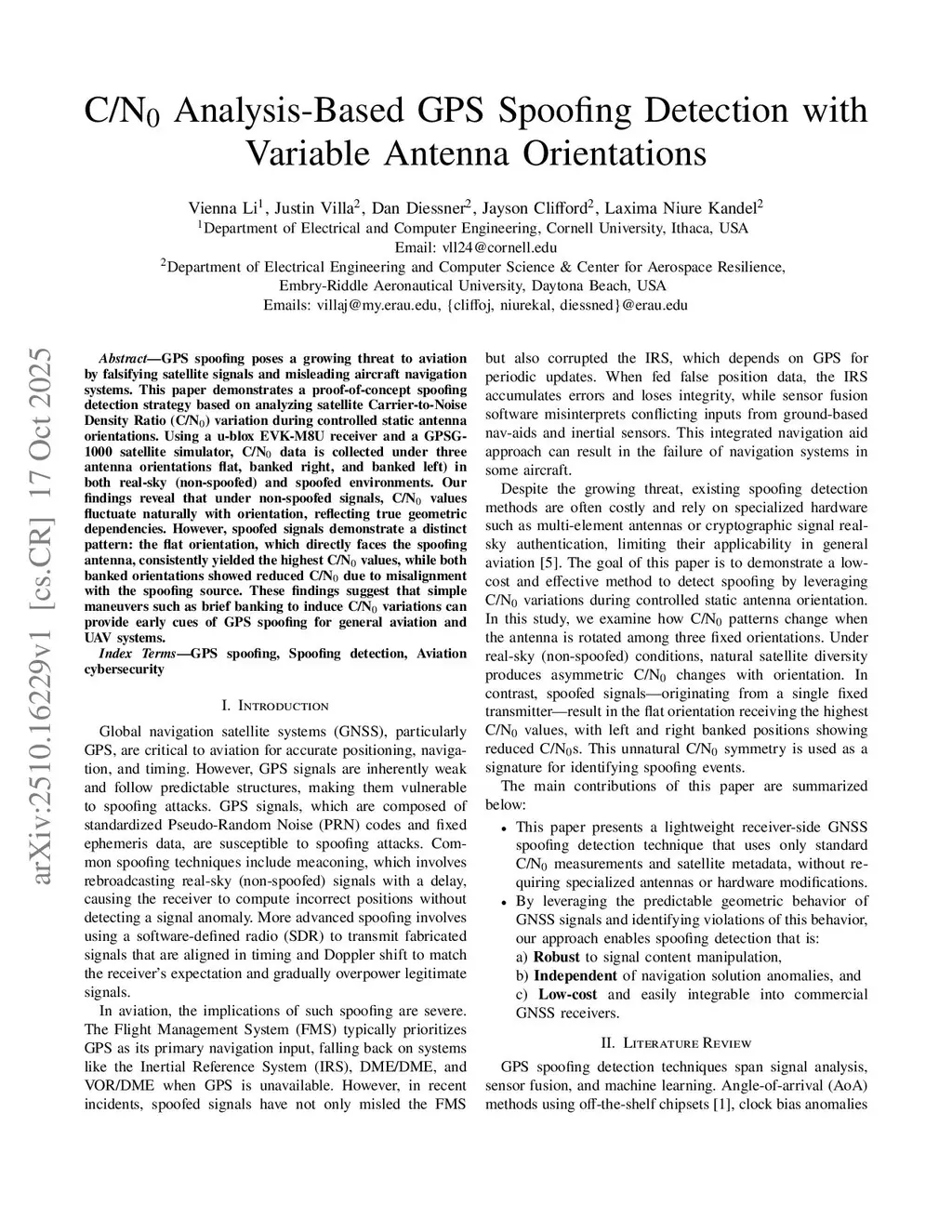 C/N0 Analysis-Based GPS Spoofing Detection with Variable Antenna Orientations