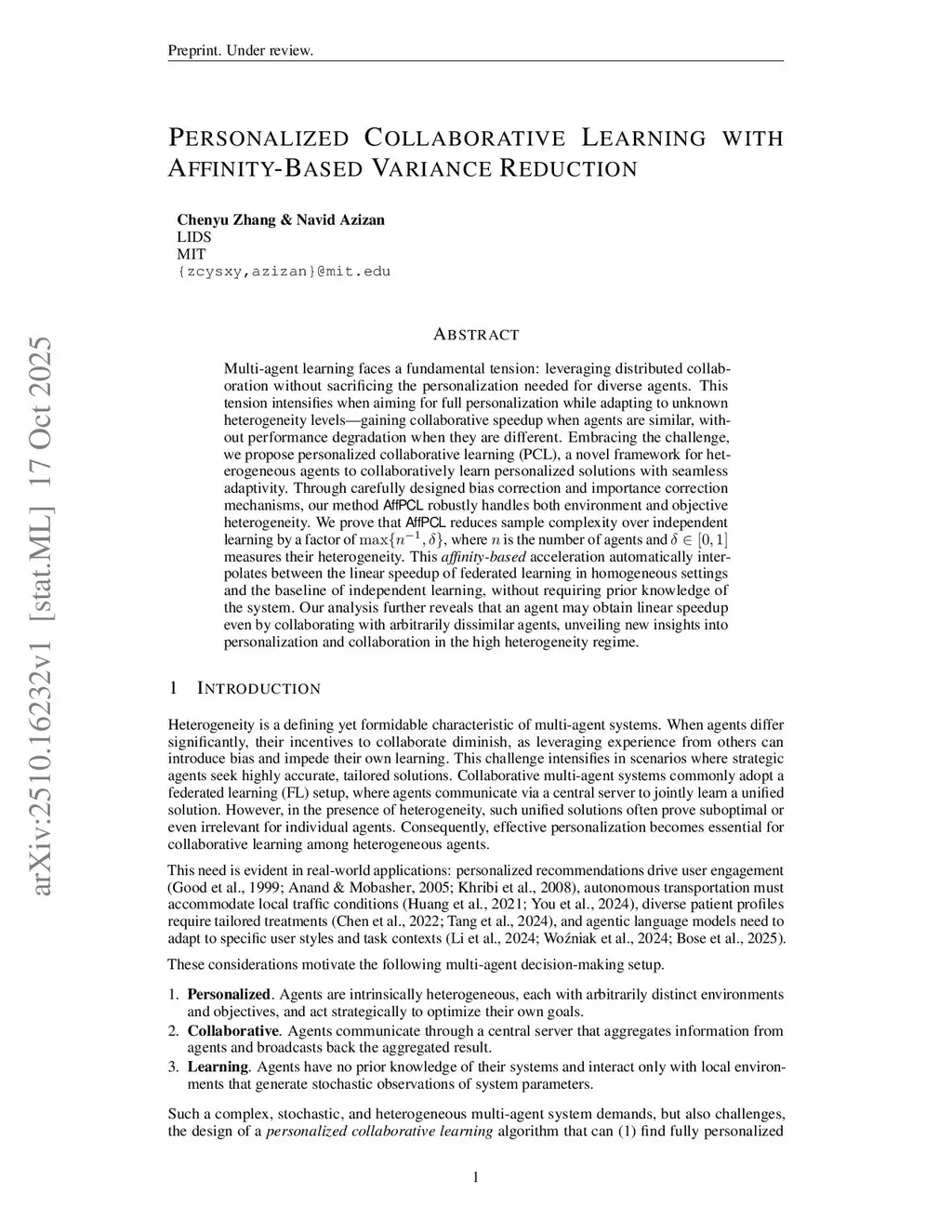 Personalized Collaborative Learning with Affinity-Based Variance Reduction