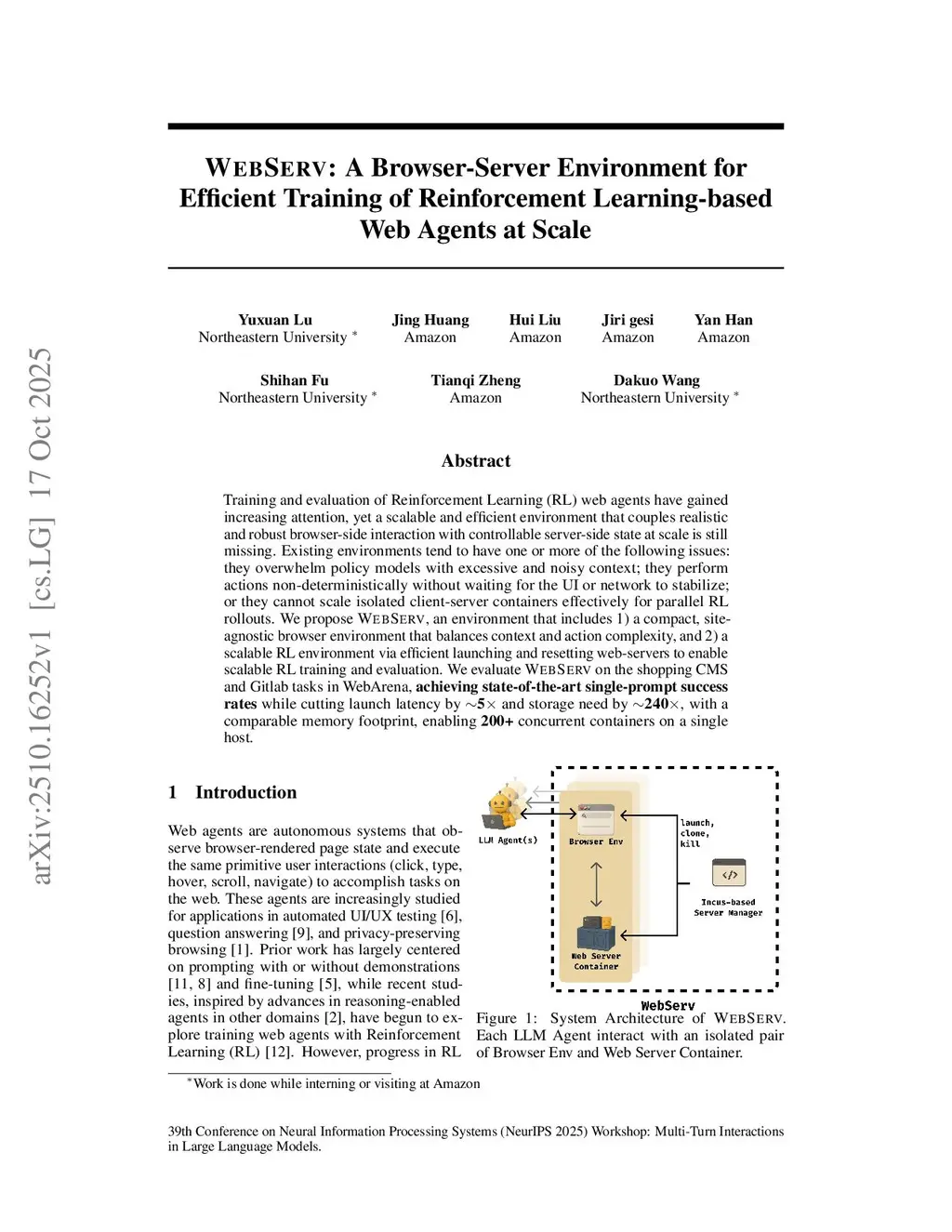 WEBSERV: A Browser-Server Environment for Efficient Training of Reinforcement Learning-based Web Agents at Scale