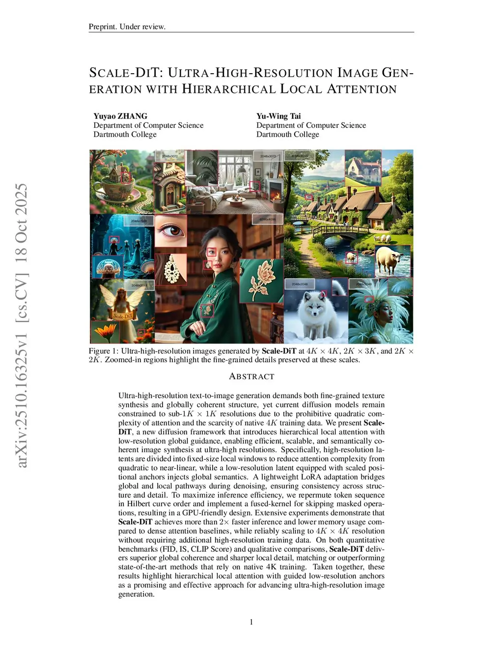Ultra-high-resolution text-to-image generation is increasingly vital for applications requiring fine-grained textures and global structural fidelity, yet state-of-the-art text-to-image diffusion models such as FLUX and SD3 remain confined to sub 2MP (< ) resolutions due to the quadratic complexity of attention mechanisms and the scarcity of high-quality high-resolution training data. We present \textbf{\ourwork}, a novel framework that introduces hierarchical local attention with low-resolution global guidance, enabling efficient, scalable, and semantically coherent image synthesis at ultra-high resolutions. Specifically, high-resolution latents are divided into hardware aligned fixed-size local windows to reduce attention complexity from quadratic to near-linear, while a low-resolution latent equipped with scaled positional embeddings injects global semantics as an anchor. A lightweight LoRA adaptation bridges global and local pathways during denoising, ensuring consistency across structure and detail. To maximize inference efficiency and achieve scalable ultra-high-resolution generation, we repermute token sequence in window-first order, so that the GPU-friendly dense local blocks in attention calculation equals to the fixed-size local window in 2D regardless of resolution. Together~\ourwork~reliably scales the pretrained model to resolutions higher than with more than speed up and significantly lower memory usage. Extensive experiments demonstrate that~\ourwork~achieves superior quality while maintaining computational efficiency, establishing a practical paradigm for advancing ultra-high-resolution image generation.