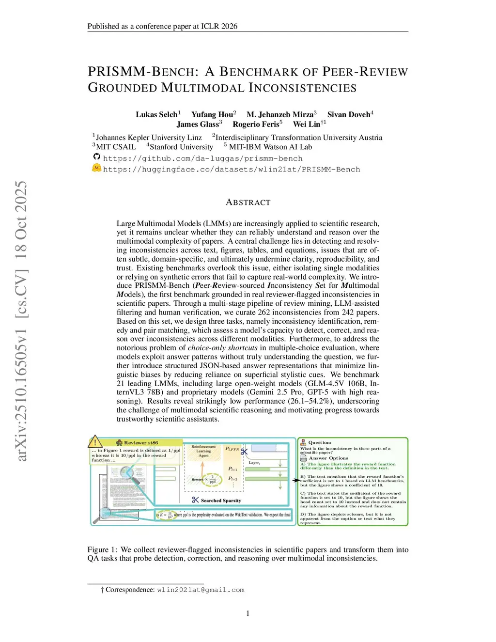 PRISMM-Bench: A Benchmark of Peer-Review Grounded Multimodal Inconsistencies
