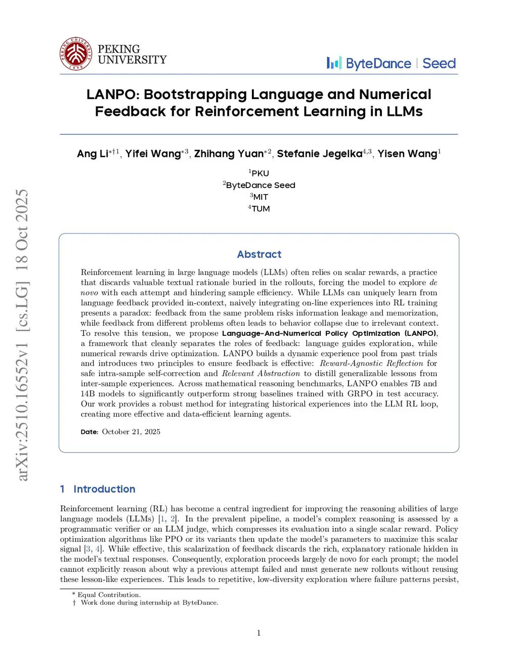 LANPO: Bootstrapping Language and Numerical Feedback for Reinforcement Learning in LLMs
