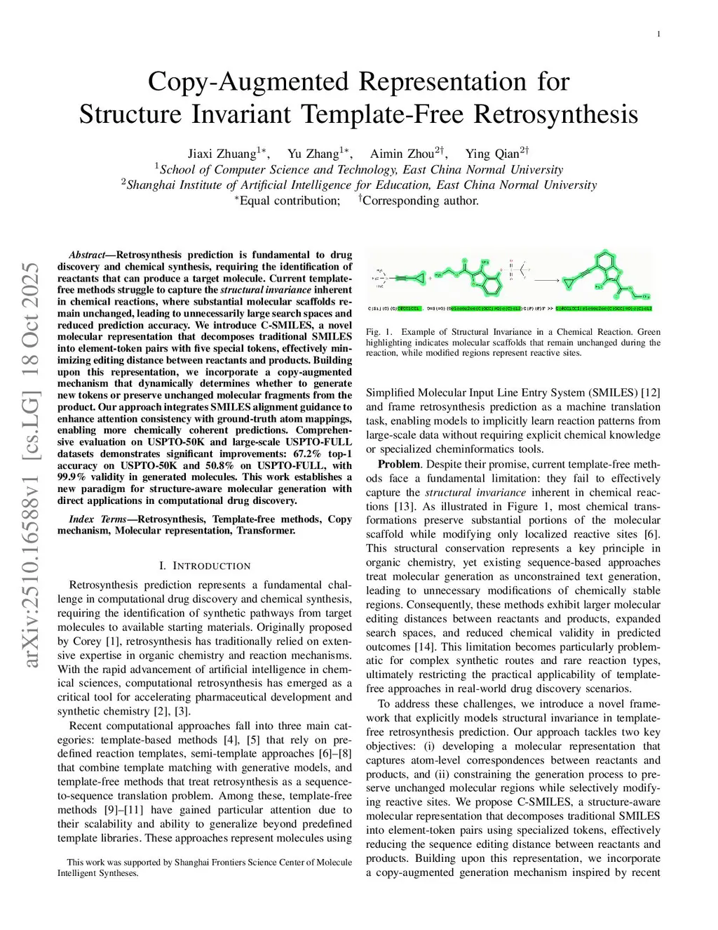 Copy-Augmented Representation for Structure Invariant Template-Free Retrosynthesis