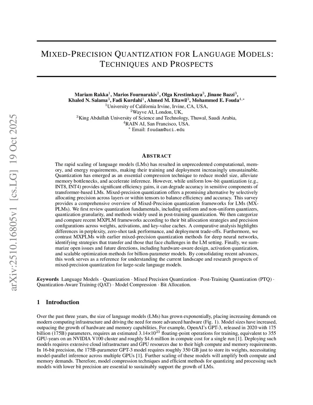 Mixed-Precision Quantization for Language Models: Techniques and Prospects