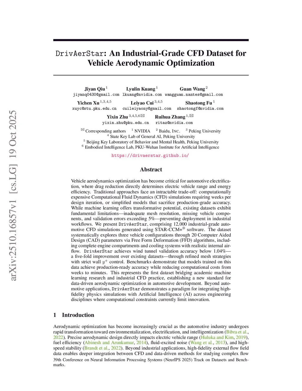 Vehicle aerodynamics optimization has become critical for automotive electrification, where drag reduction directly determines electric vehicle range and energy efficiency. Traditional approaches face an intractable trade-off: computationally expensive Computational Fluid Dynamics (CFD) simulations requiring weeks per design iteration, or simplified models that sacrifice production-grade accuracy. While machine learning offers transformative potential, existing datasets exhibit fundamental limitations -- inadequate mesh resolution, missing vehicle components, and validation errors exceeding 5% -- preventing deployment in industrial workflows. We present DrivAerStar, comprising 12,000 industrial-grade automotive CFD simulations generated using STAR-CCM+ software. The dataset systematically explores three vehicle configurations through 20 Computer Aided Design (CAD) parameters via Free Form Deformation (FFD) algorithms, including complete engine compartments and cooling systems with realistic internal airflow. DrivAerStar achieves wind tunnel validation accuracy below 1.04% -- a five-fold improvement over existing datasets -- through refined mesh strategies with strict wall control. Benchmarks demonstrate that models trained on this data achieve production-ready accuracy while reducing computational costs from weeks to minutes. This represents the first dataset bridging academic machine learning research and industrial CFD practice, establishing a new standard for data-driven aerodynamic optimization in automotive development. Beyond automotive applications, DrivAerStar demonstrates a paradigm for integrating high-fidelity physics simulations with Artificial Intelligence (AI) across engineering disciplines where computational constraints currently limit innovation.
