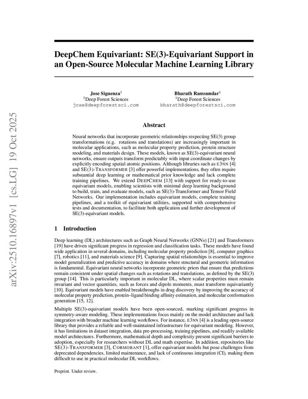 Neural networks that incorporate geometric relationships respecting SE(3) group transformations (e.g. rotations and translations) are increasingly important in molecular applications, such as molecular property prediction, protein structure modeling, and materials design. These models, known as SE(3)-equivariant neural networks, ensure outputs transform predictably with input coordinate changes by explicitly encoding spatial atomic positions. Although libraries such as E3NN [4] and SE(3)-TRANSFORMER [3 ] offer powerful implementations, they often require substantial deep learning or mathematical prior knowledge and lack complete training pipelines. We extend DEEPCHEM [ 13] with support for ready-to-use equivariant models, enabling scientists with minimal deep learning background to build, train, and evaluate models, such as SE(3)-Transformer and Tensor Field Networks. Our implementation includes equivariant models, complete training pipelines, and a toolkit of equivariant utilities, supported with comprehensive tests and documentation, to facilitate both application and further development of SE(3)-equivariant models.