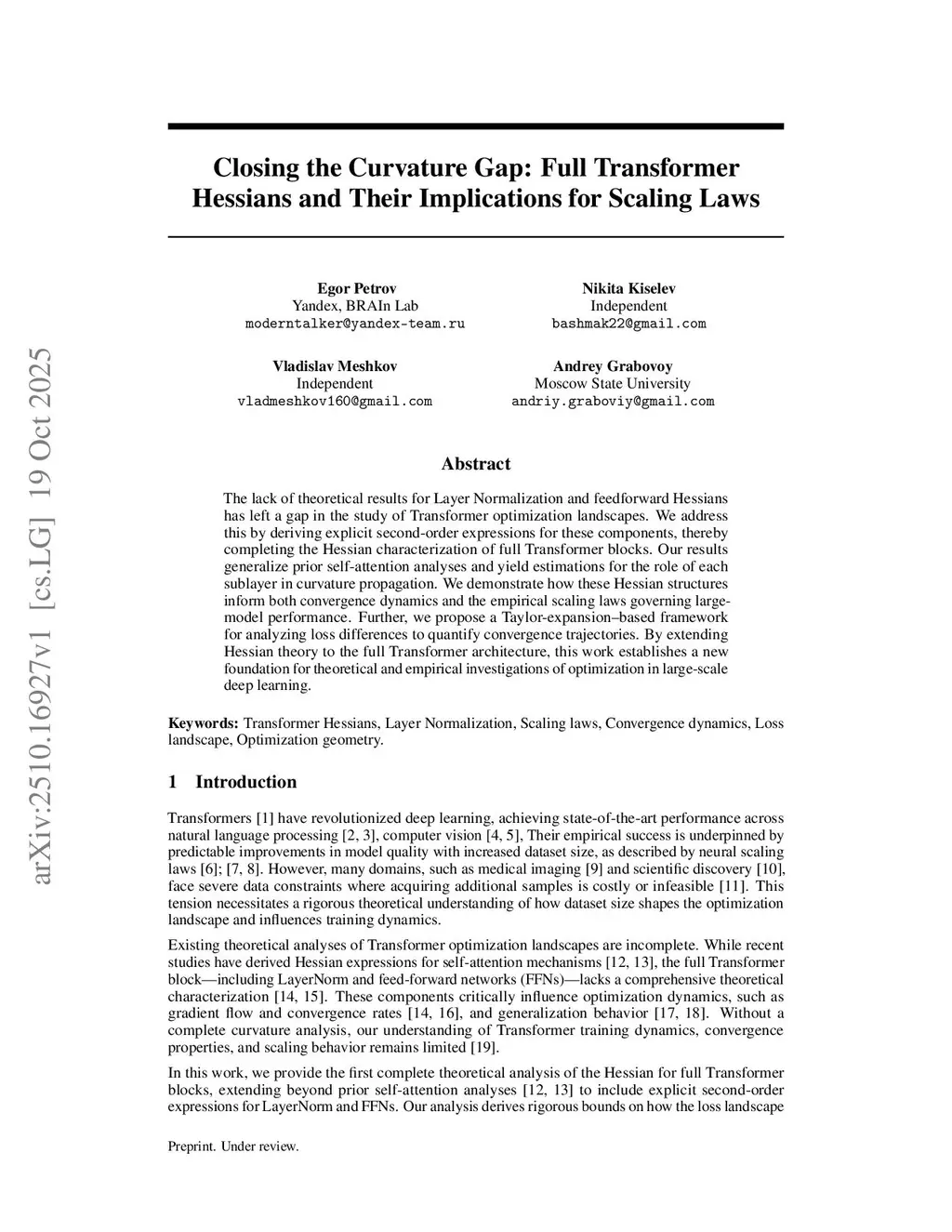 Closing the Curvature Gap: Full Transformer Hessians and Their Implications for Scaling Laws