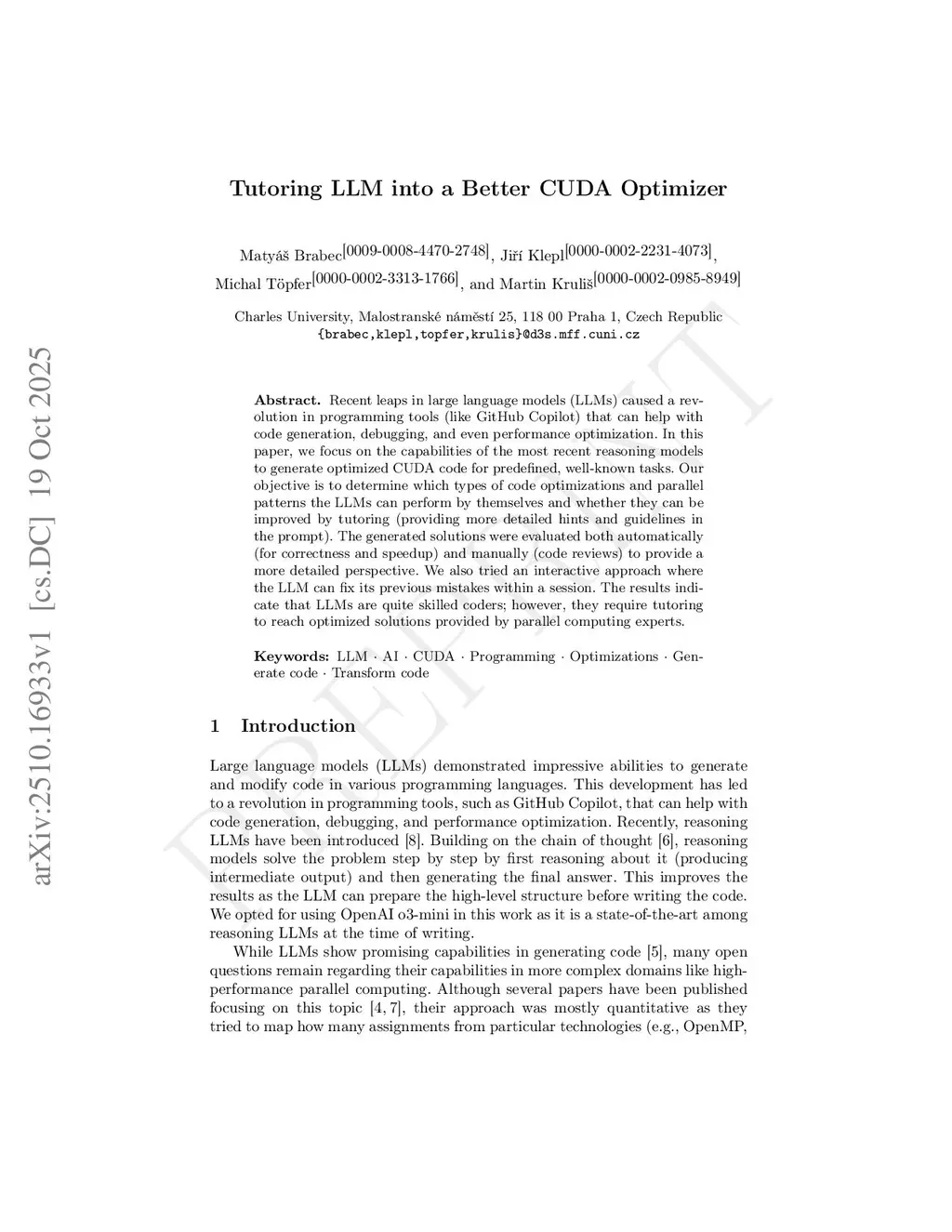 Recent leaps in large language models (LLMs) caused a revolution in programming tools (like GitHub Copilot) that can help with code generation, debugging, and even performance optimization. In this paper, we focus on the capabilities of the most recent reasoning models to generate optimized CUDA code for predefined, well-known tasks. Our objective is to determine which types of code optimizations and parallel patterns the LLMs can perform by themselves and whether they can be improved by tutoring (providing more detailed hints and guidelines in the prompt). The generated solutions were evaluated both automatically (for correctness and speedup) and manually (code reviews) to provide a more detailed perspective. We also tried an interactive approach where the LLM can fix its previous mistakes within a session. The results indicate that LLMs are quite skilled coders; however, they require tutoring to reach optimized solutions provided by parallel computing experts.