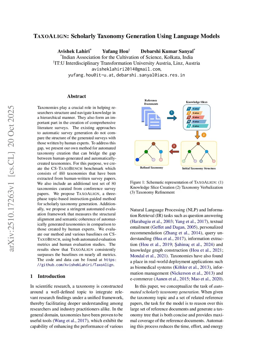 TaxoAlign: Scholarly Taxonomy Generation Using Language Models