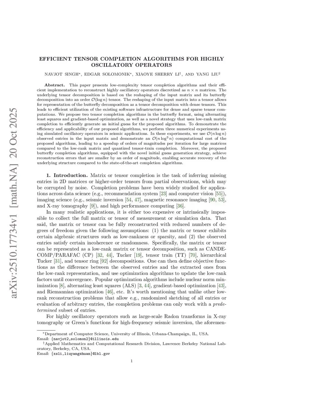 Efficient Tensor Completion Algorithms for Highly Oscillatory Operators