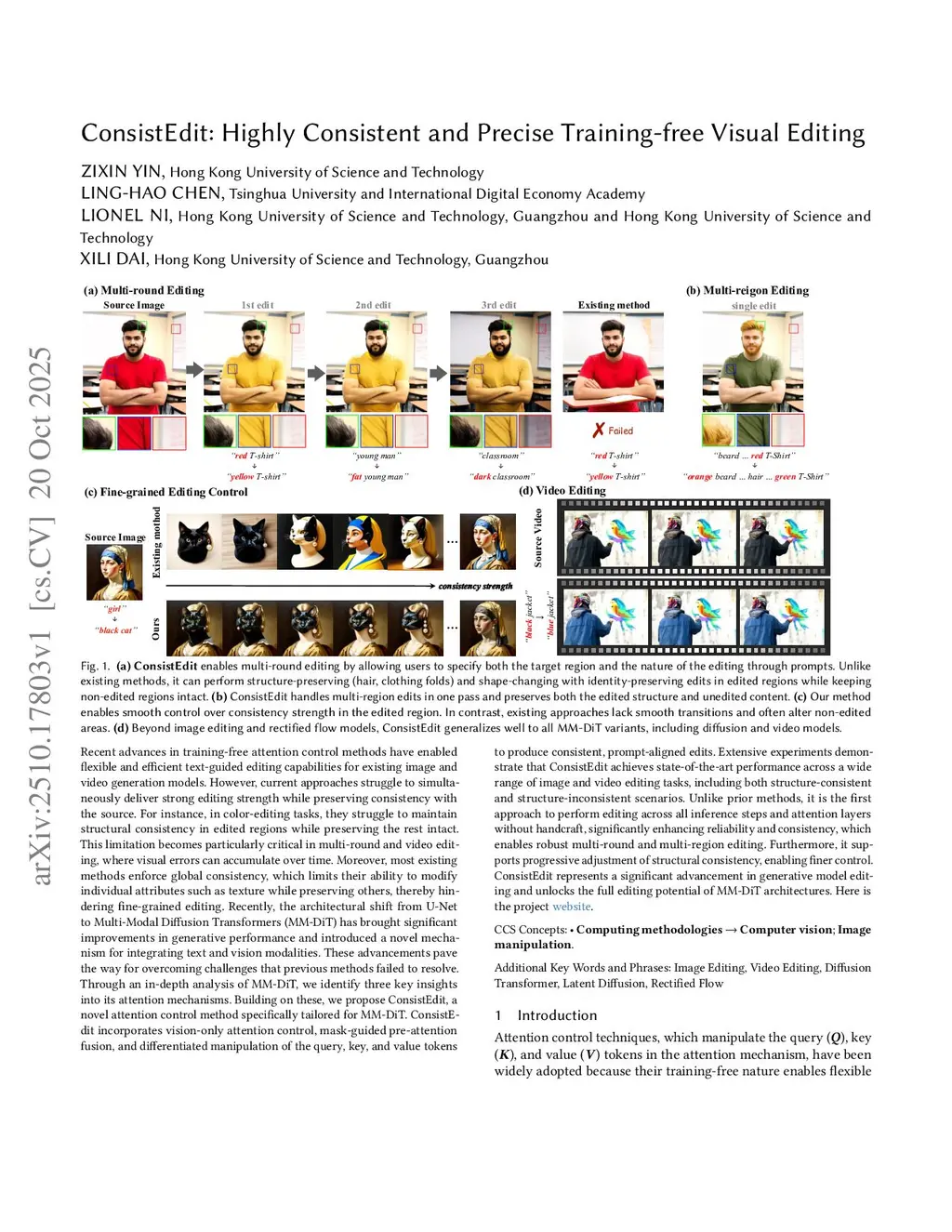 Recent advances in training-free attention control methods have enabled flexible and efficient text-guided editing capabilities for existing generation models. However, current approaches struggle to simultaneously deliver strong editing strength while preserving consistency with the source. This limitation becomes particularly critical in multi-round and video editing, where visual errors can accumulate over time. Moreover, most existing methods enforce global consistency, which limits their ability to modify individual attributes such as texture while preserving others, thereby hindering fine-grained editing. Recently, the architectural shift from U-Net to MM-DiT has brought significant improvements in generative performance and introduced a novel mechanism for integrating text and vision modalities. These advancements pave the way for overcoming challenges that previous methods failed to resolve. Through an in-depth analysis of MM-DiT, we identify three key insights into its attention mechanisms. Building on these, we propose ConsistEdit, a novel attention control method specifically tailored for MM-DiT. ConsistEdit incorporates vision-only attention control, mask-guided pre-attention fusion, and differentiated manipulation of the query, key, and value tokens to produce consistent, prompt-aligned edits. Extensive experiments demonstrate that ConsistEdit achieves state-of-the-art performance across a wide range of image and video editing tasks, including both structure-consistent and structure-inconsistent scenarios. Unlike prior methods, it is the first approach to perform editing across all inference steps and attention layers without handcraft, significantly enhancing reliability and consistency, which enables robust multi-round and multi-region editing. Furthermore, it supports progressive adjustment of structural consistency, enabling finer control.