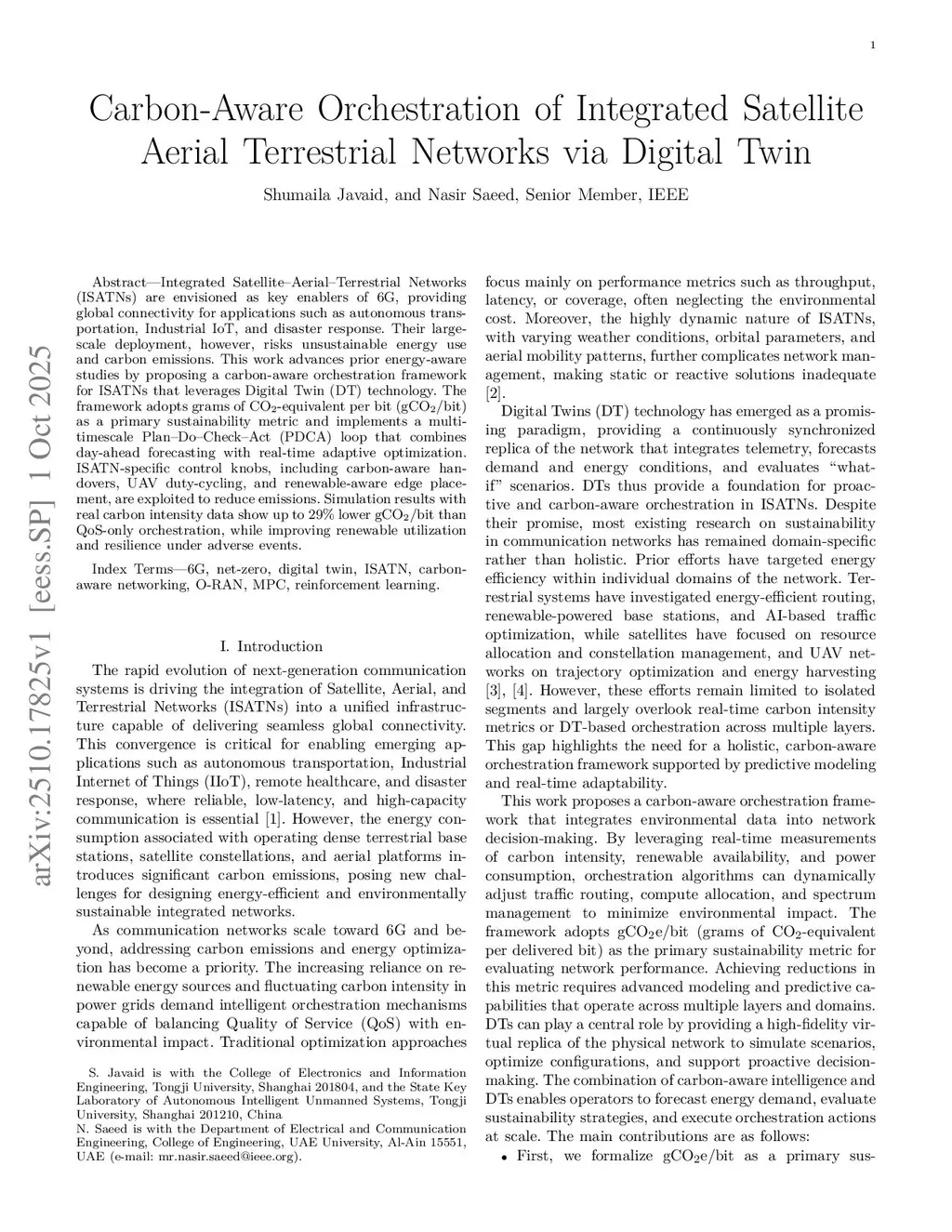Carbon-Aware Orchestration of Integrated Satellite Aerial Terrestrial Networks via Digital Twin